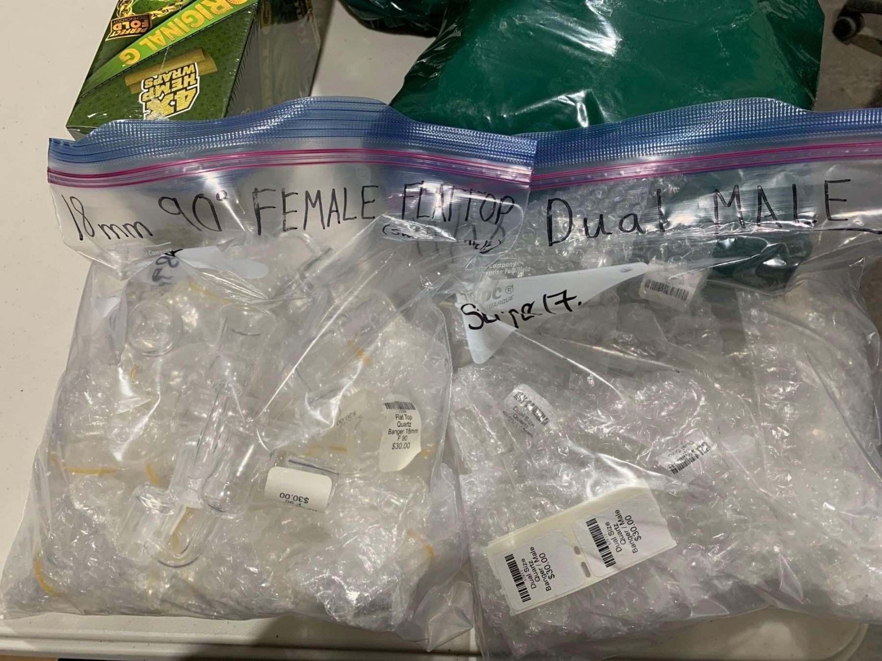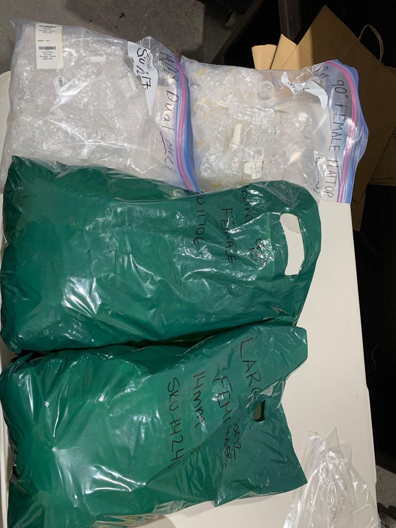 Mixed lot of miscellaneous glass pipe parts