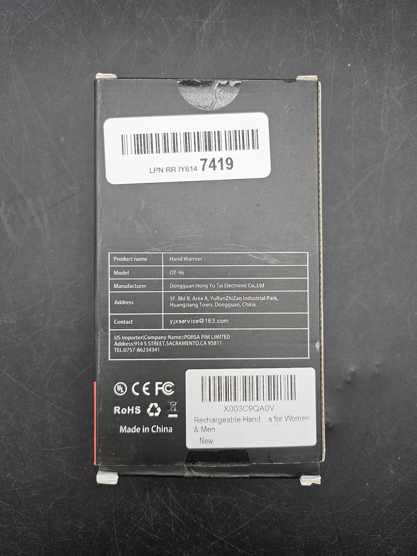 Model QT-96 Hand Warmer and Power Bank, 10000mAh Capacity