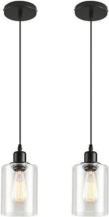 Modern Black Pendant Light Fixtures, Industrial Hanging Ceiling Lamp with Clear Glass Shade, Mini Farmhouse Pendant Lighting for Kitchen Island Decor, 4.72 Inch Shade, Matte Black