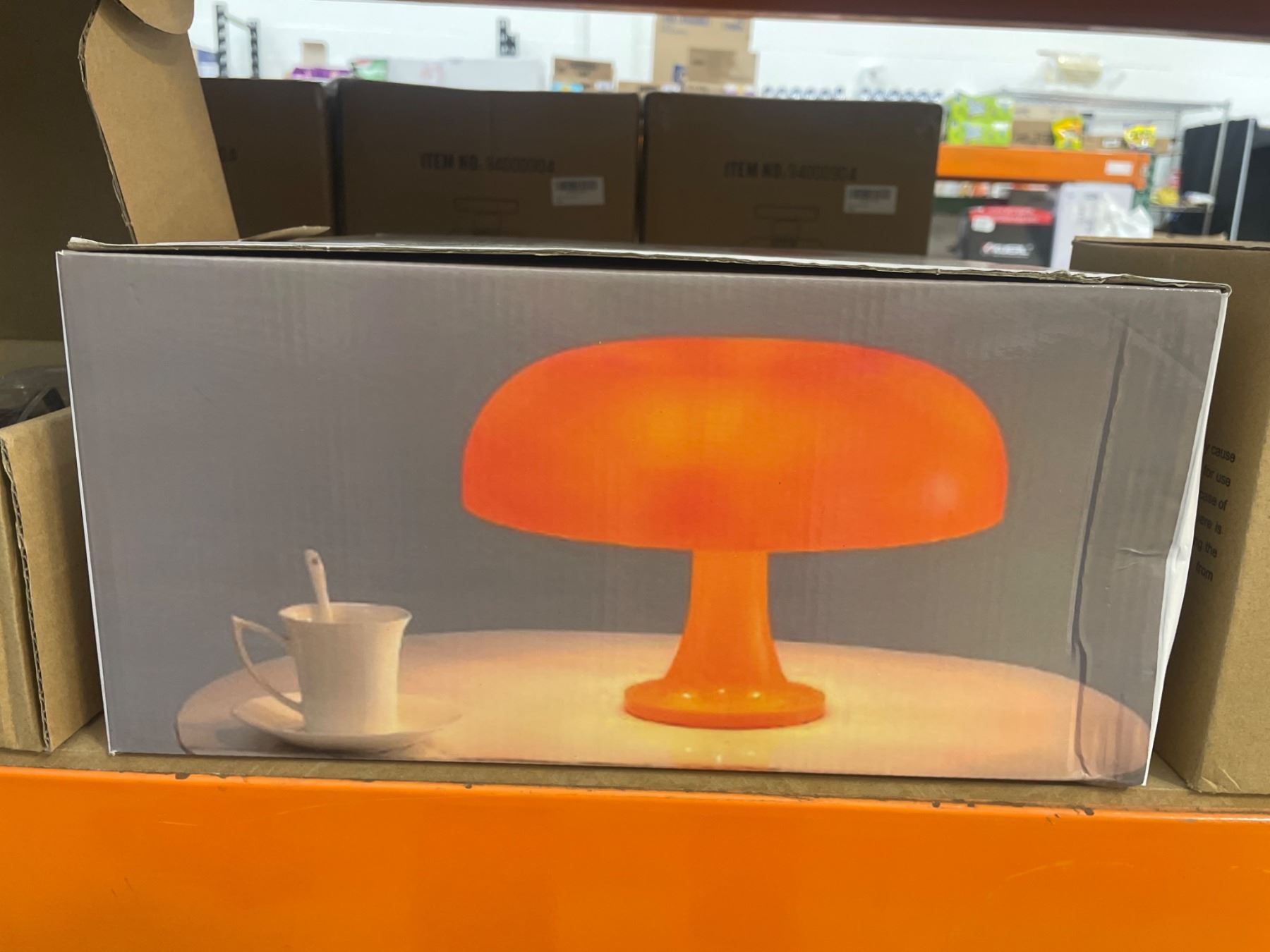 This table lamp features a vibrant orange dome-shaped design with an acrylic shade. Dimensions and power requirements are not indicated. No additional components or accessories are included in the listing. Suitable for indoor lighting purposes.