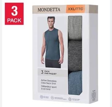 Mondetta Men’s Sleeveless Crew Neck Shirts, 3-Pack, Size Large (L/G)
