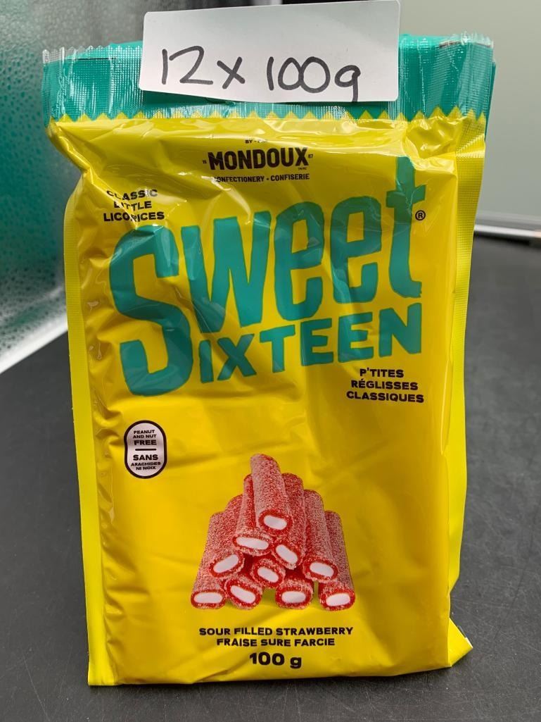 Mondoux Sweet Sixteen Sour-Filled Strawberry Licorice 12x100g
