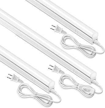 Monios-L Linkable LED Under Cabinet & Closet LED T5 Light Bar, 2FT, 9W 800 Lumens, 5000K Super Bright, Plug and Play, 3 Pack