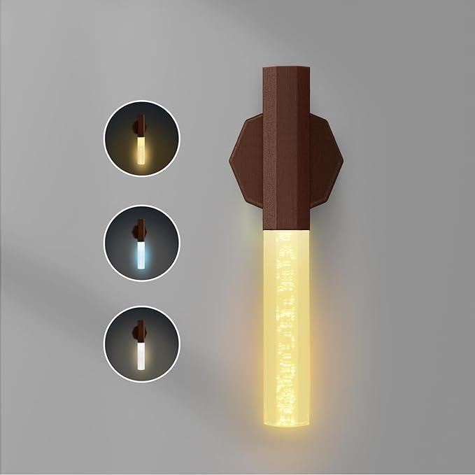Motion Sensor Night Light Indoor with 3 Color Mode, Rechargeable Powerful Magnetic Body Wall Light Led Hallway Light, Battery-Operated Wooden Wall Sconce for Hallway, Stairway Lot of 2