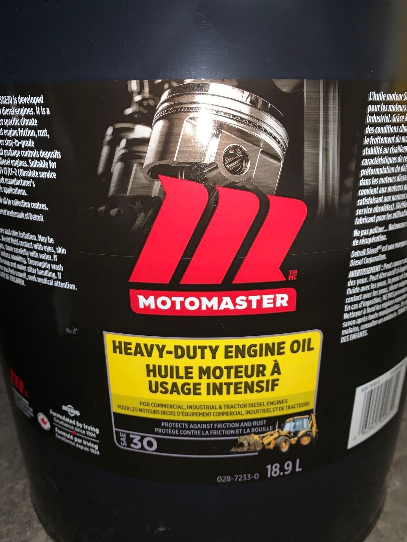 MotoMaster Heavy - Duty Engine Oil SAE30 for commercial, industrial & tractor diesel engines 18.9L