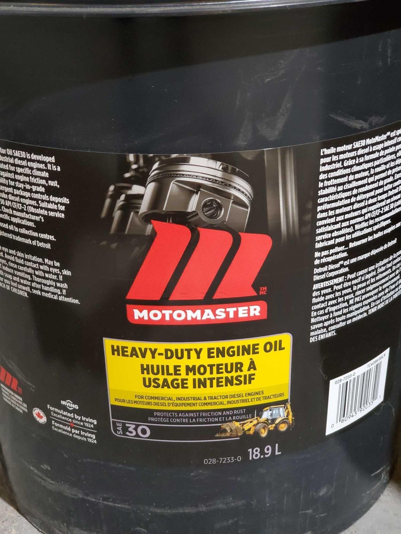 MotoMaster Heavy - Duty Engine Oil SAE30 for commercial, industrial & tractor diesel engines 18.9L