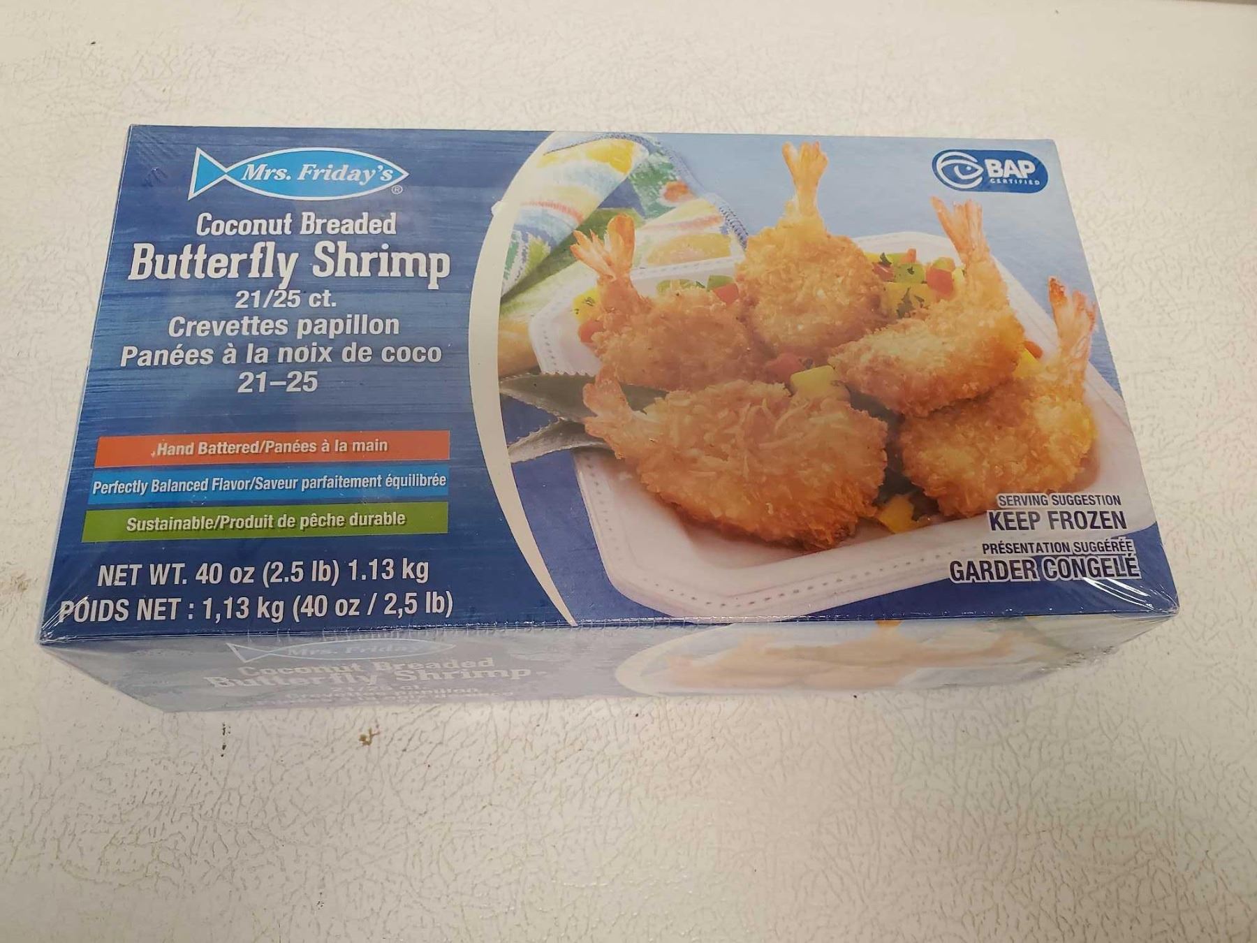 Mrs. Friday's Coconut Breaded Butterfly Shrimp 21/25 Count Box 2.5Lbs