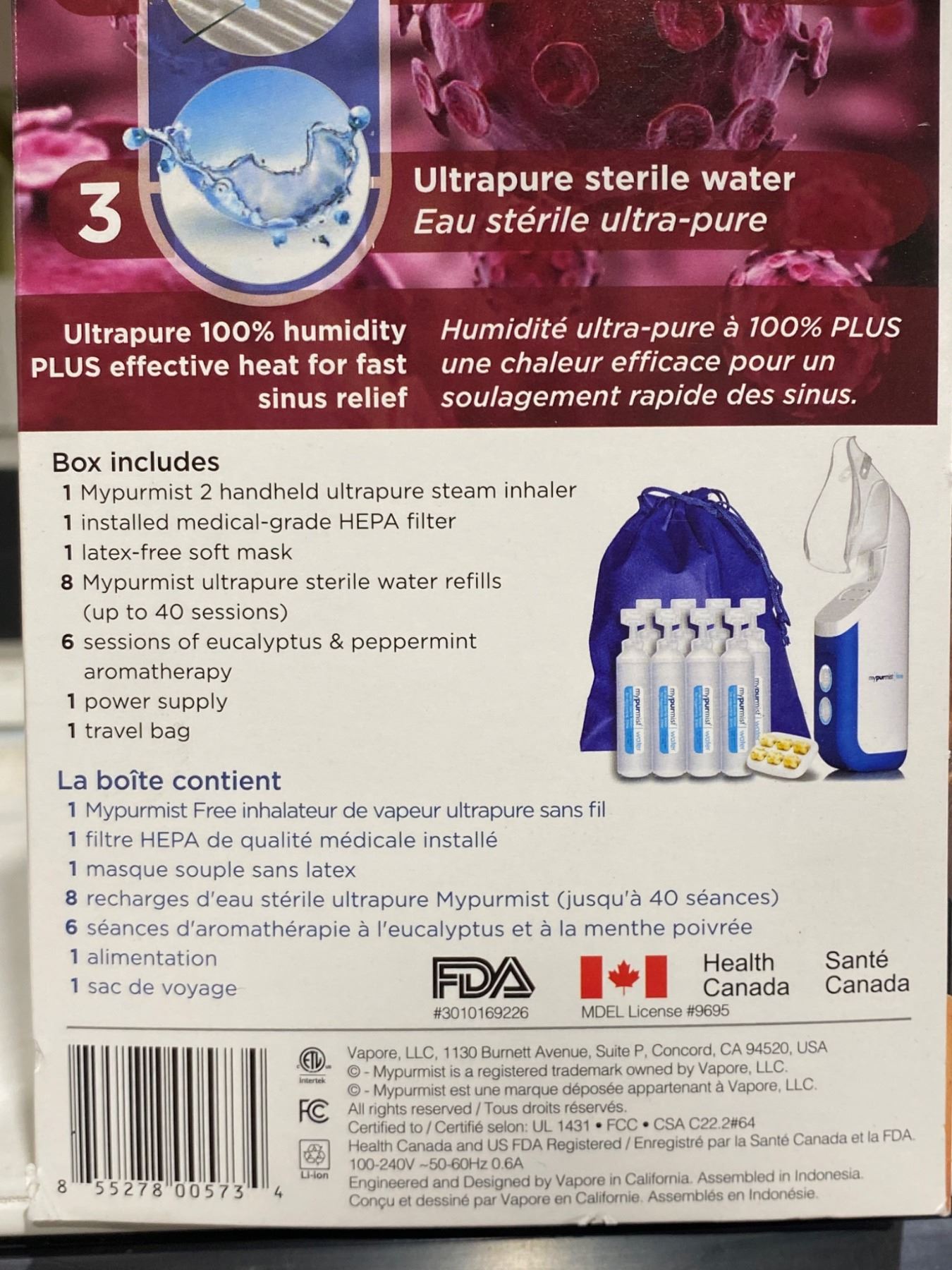 MyPurMist Free Cordless Ultrapure Steam Inhaler with Accessories