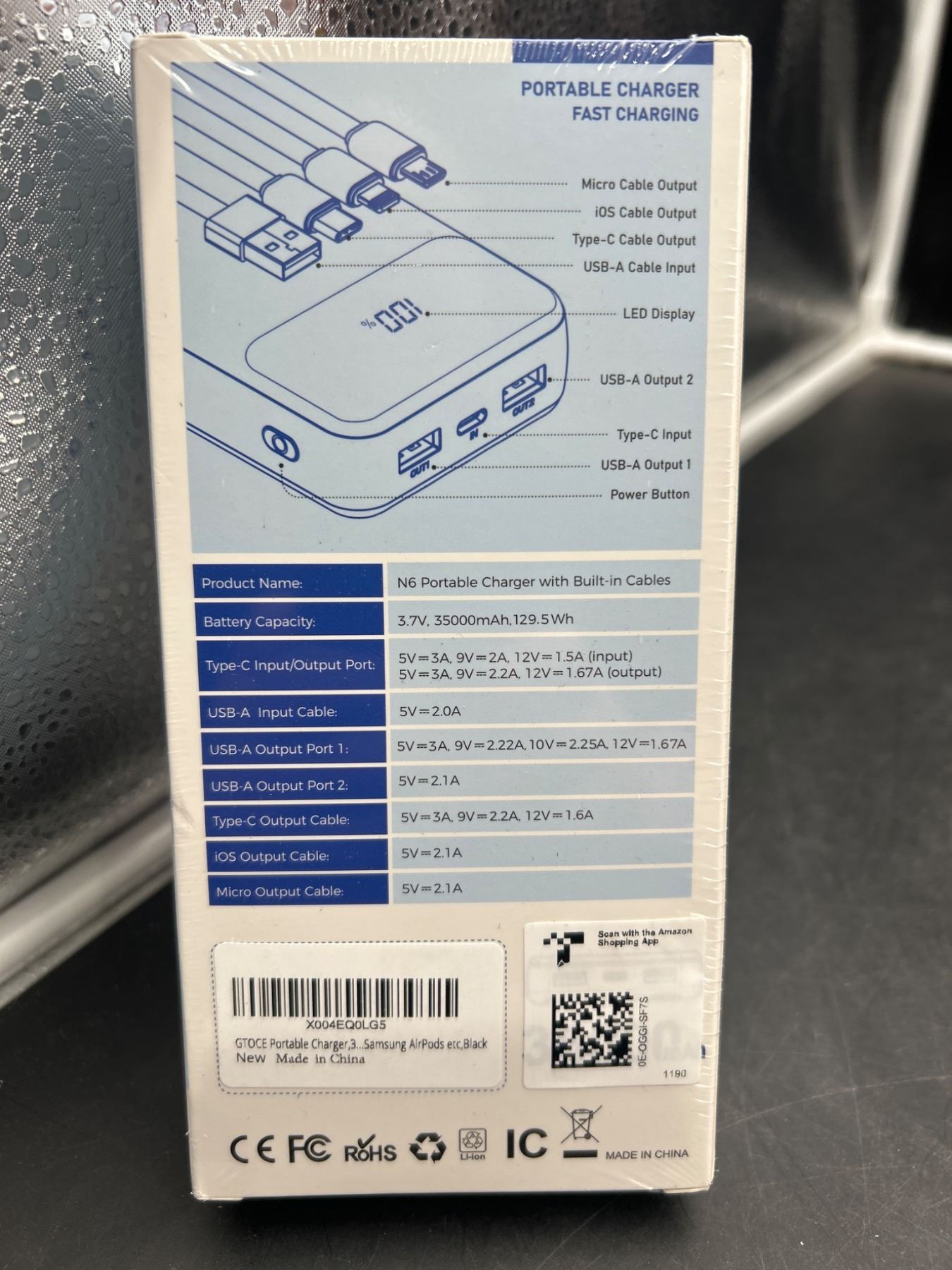 N6 PD22.5W Portable Charger 35000mAh with Built-in Cables