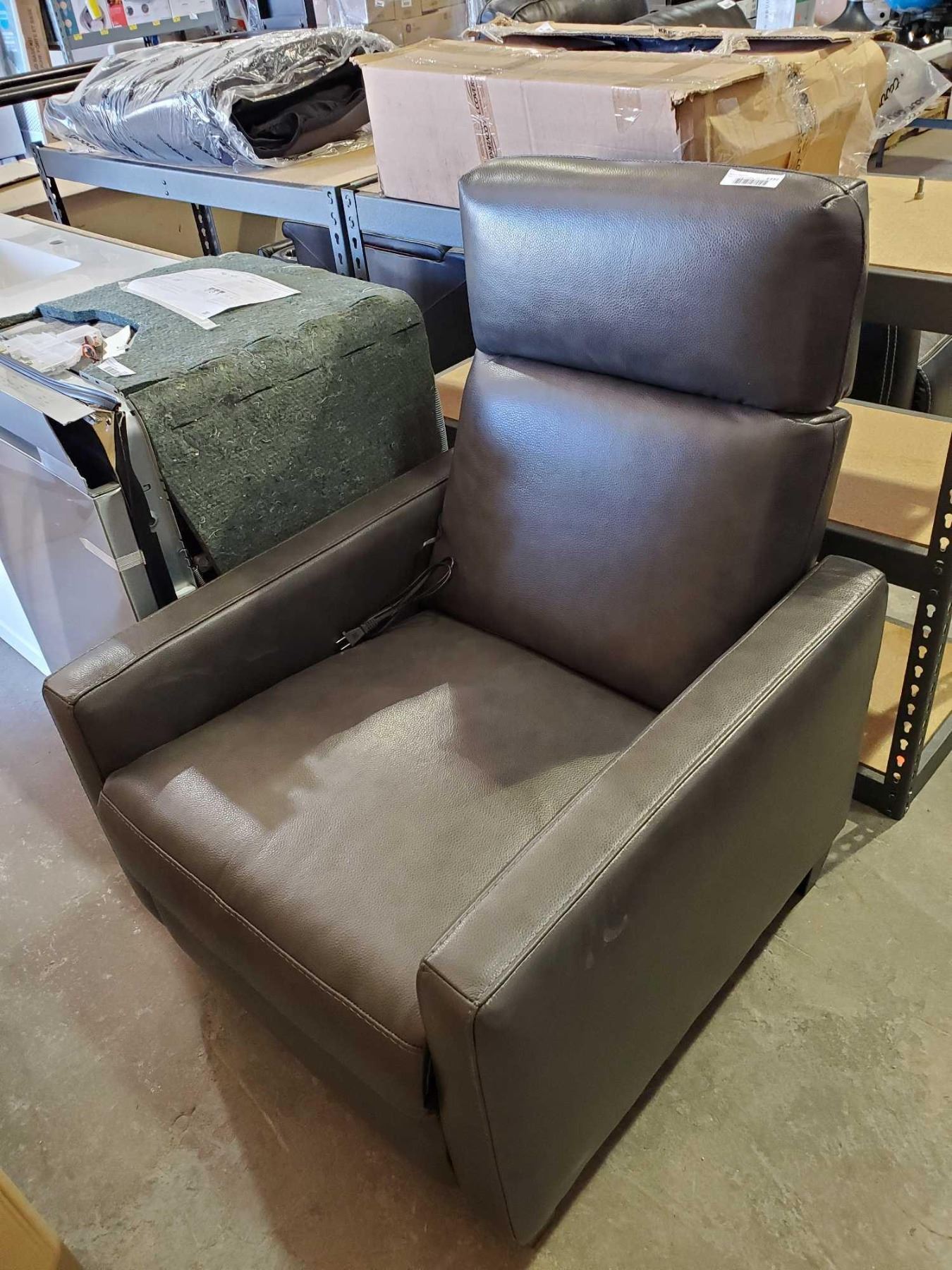 NEW Brown Leather Power Recliner with adapter, tested working . Floor demo model