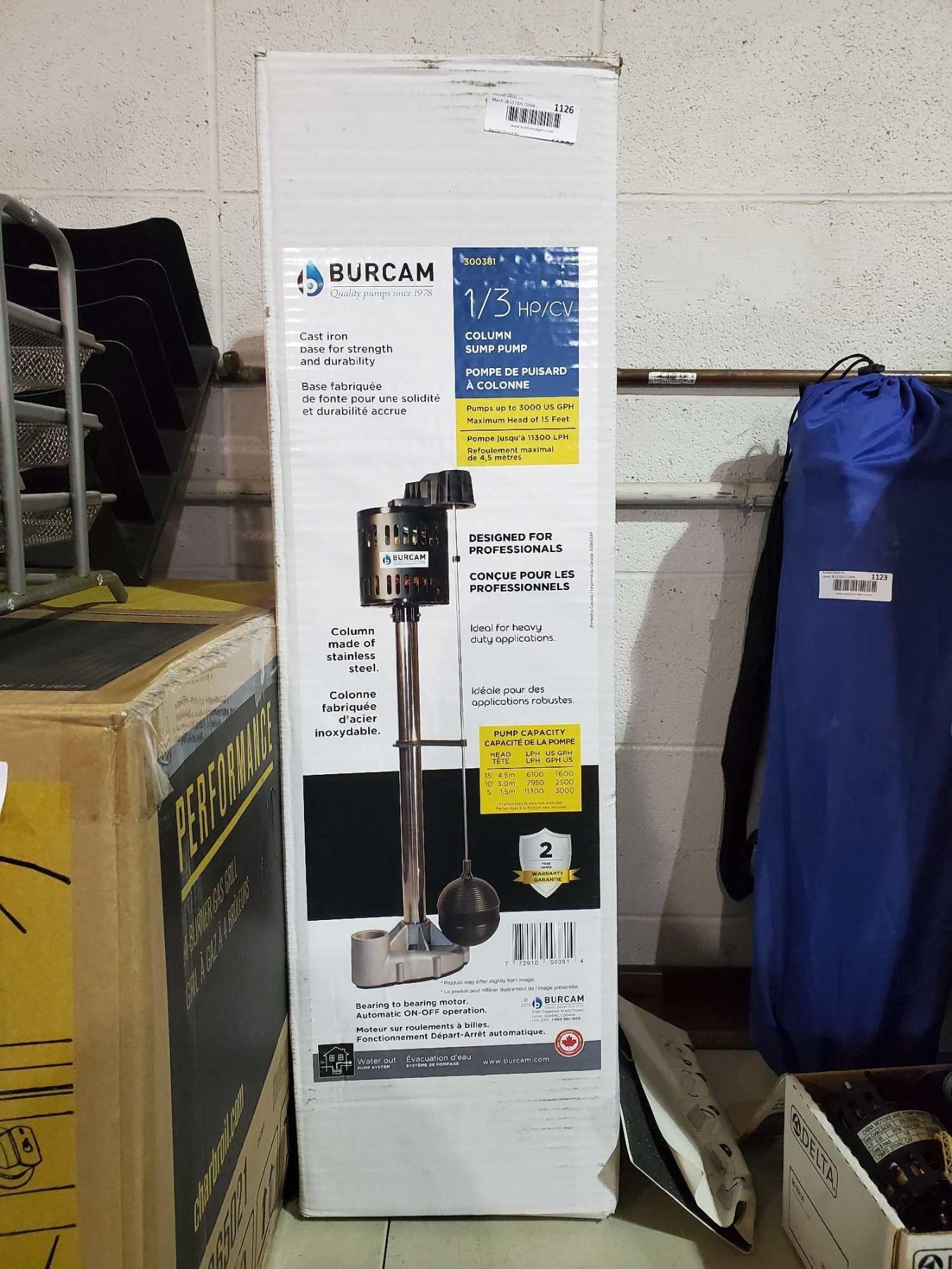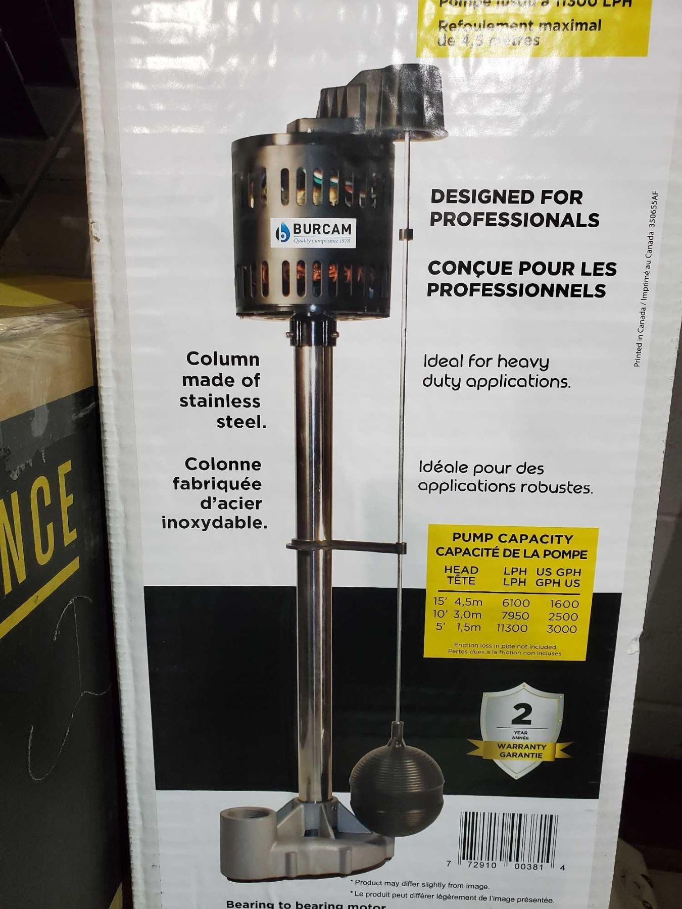 NEW Burcam 1/4 HP Column Sup Pump