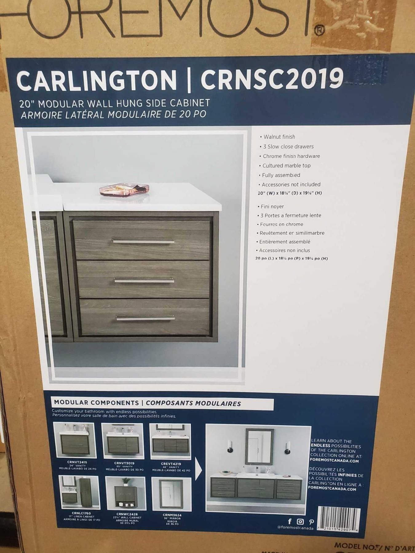 NEW Carlington 20" Modular Wall Hung 3 drawer Side Cabinet- Walnut