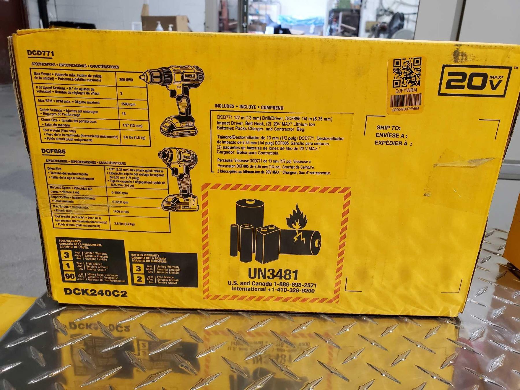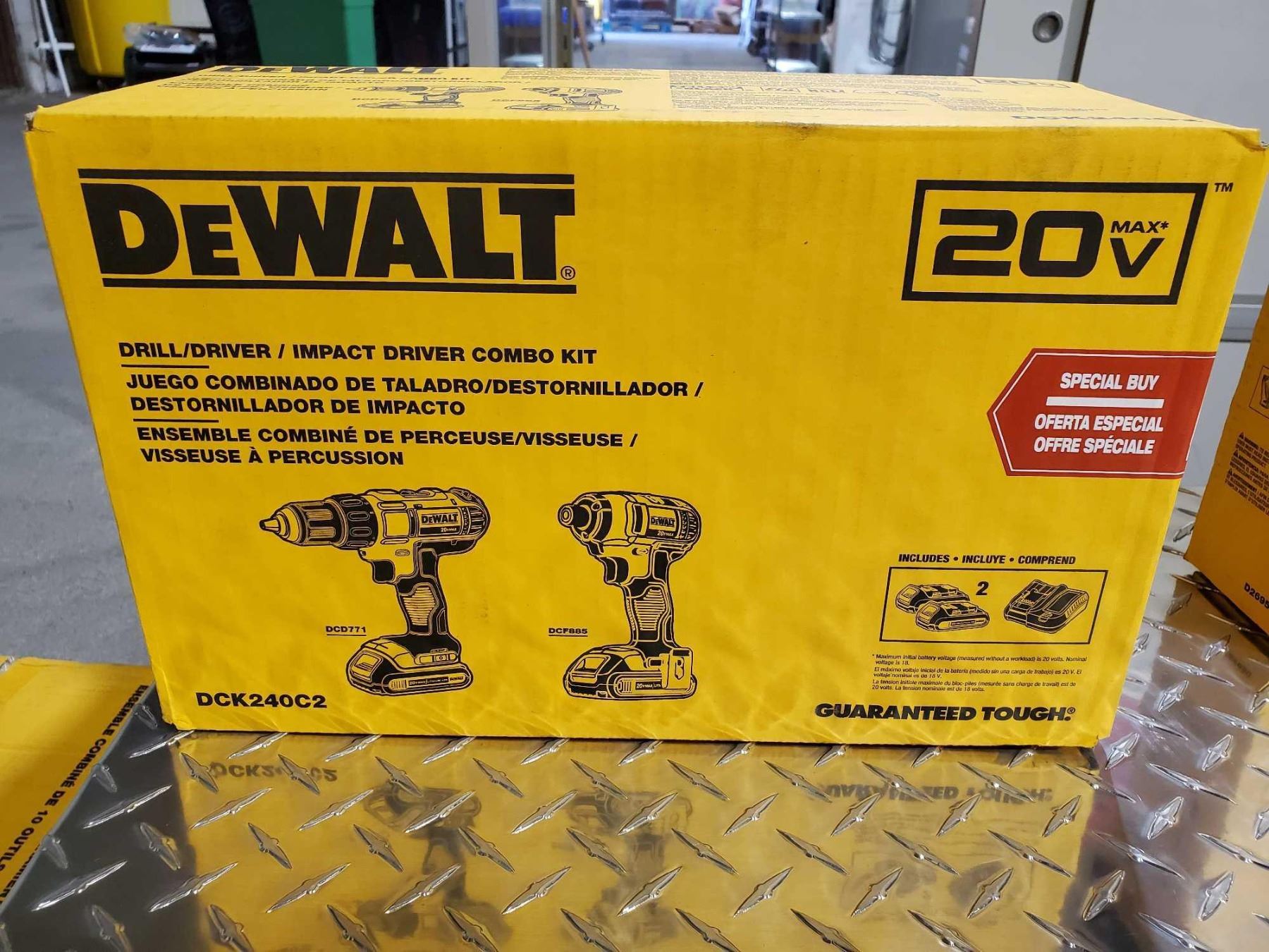 NEW - Dewalt Drill Driver  / Impact Driver Kit with 2X 20V Batteries & Charger