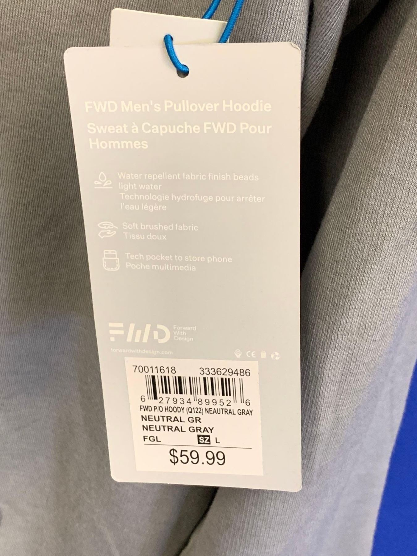 NEW FWD Brand Pull over HoodyÊ Neutral gray Sz Large