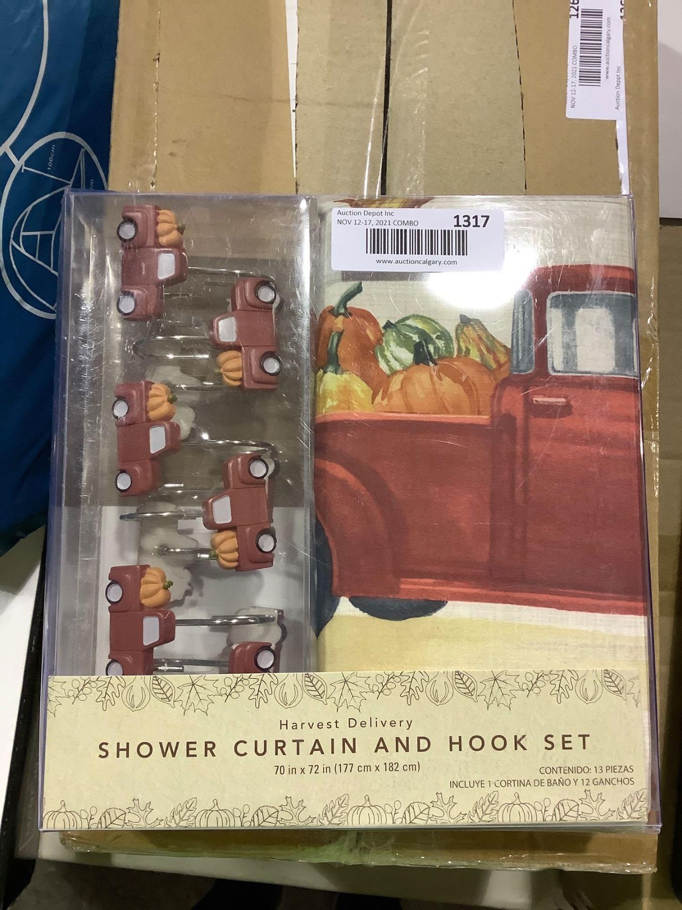 *NEW* Harvest Delivery Shower Curtain with Matching Curtain Hooks