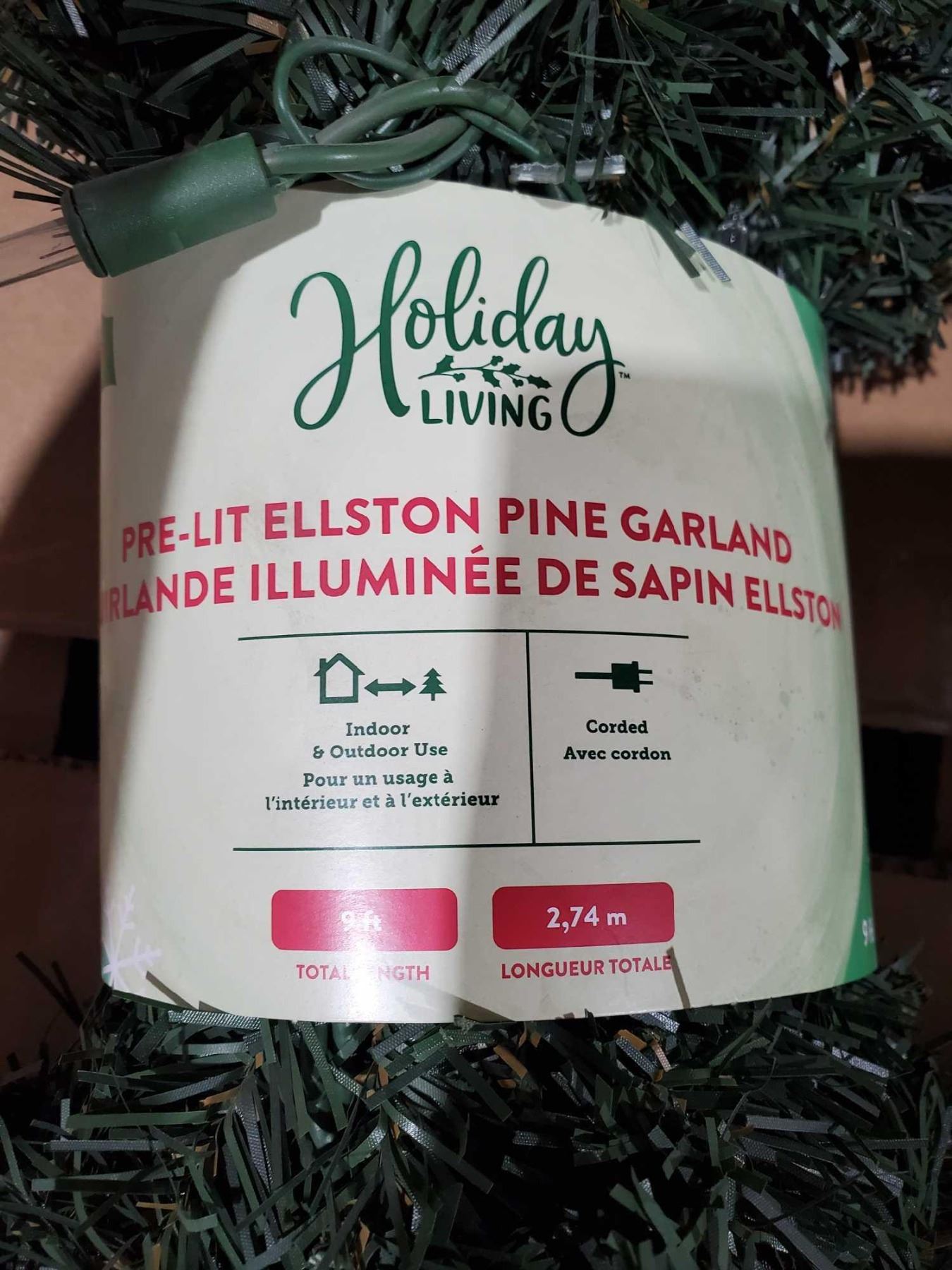 NEW Holiday Living Pre-Lit Ellston Pine Garland indoor/outdoor 9ft length LOT of 2