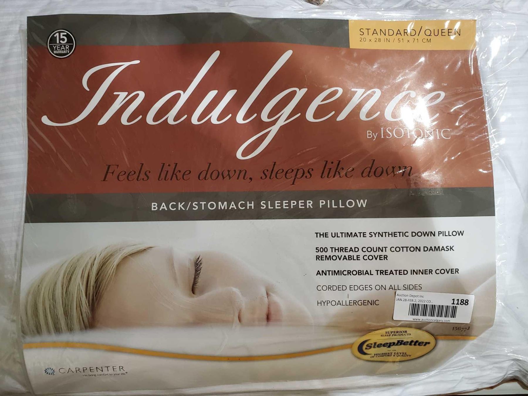 *NEW* Indulgence - Back/Stomach SLeeper Down Alternative Standard/Queen Size Pillow