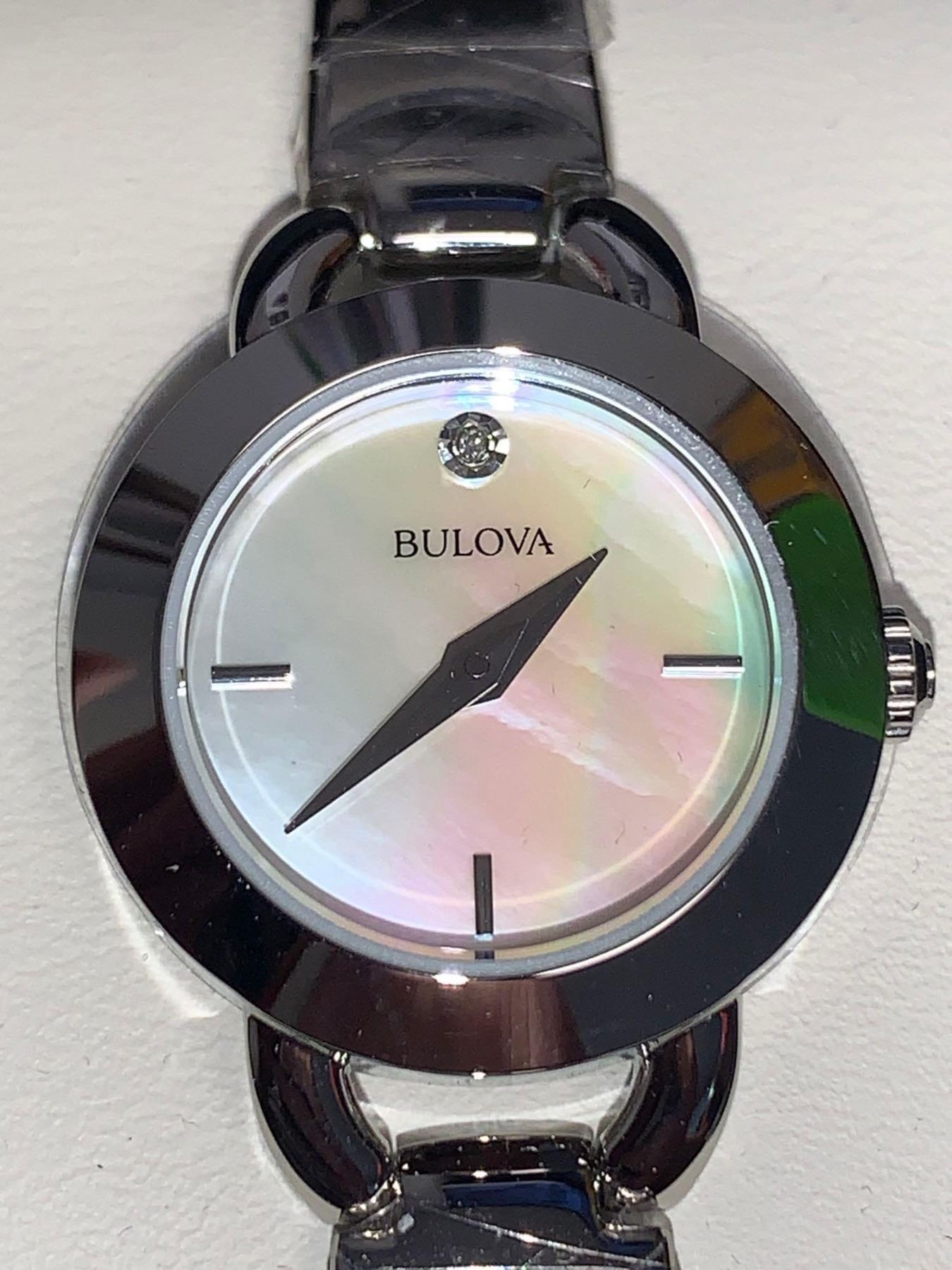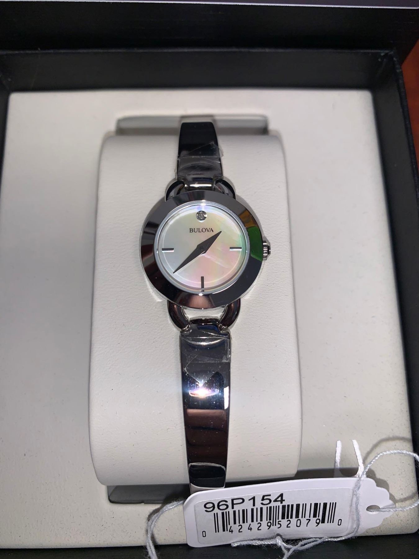 NEW Ladies' Bulova Diamond Accented Bangle Watch with Mother-of-Pearl Dial with Diamond accent on Face includes certificate, manual & Box