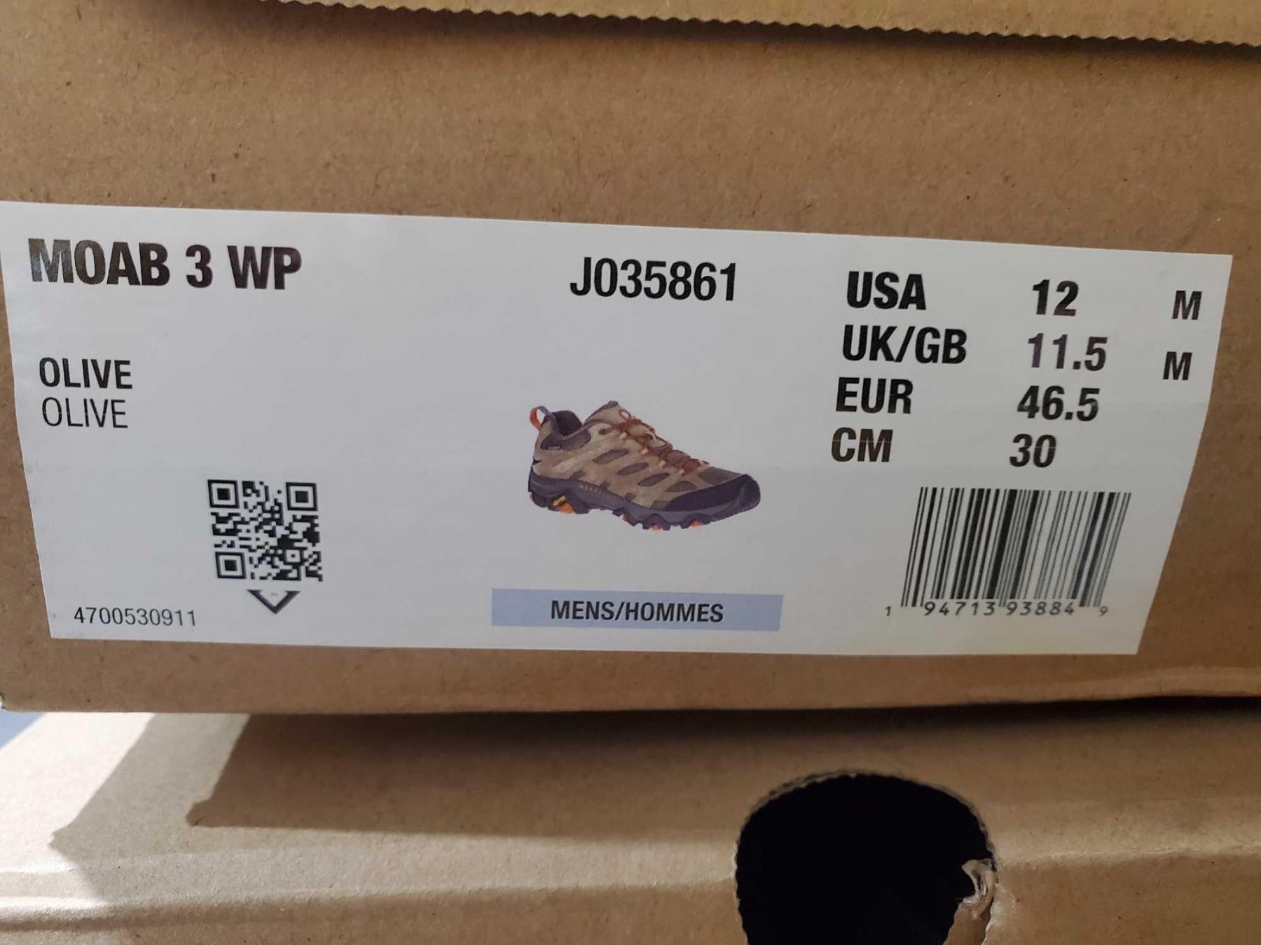 NEW Mens Merrell MOAB 3 WP Shoe Olive Size 12