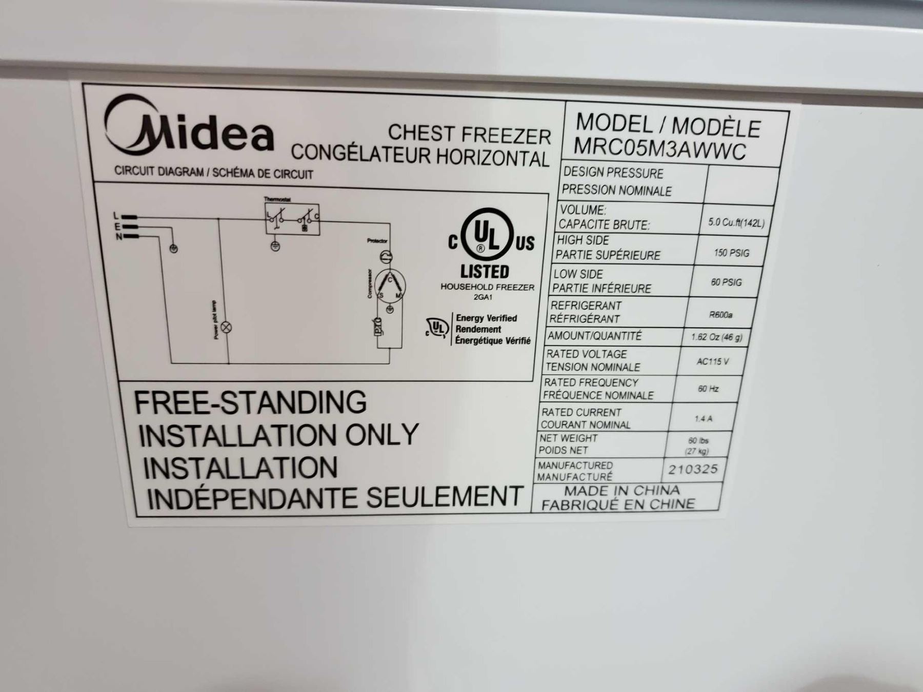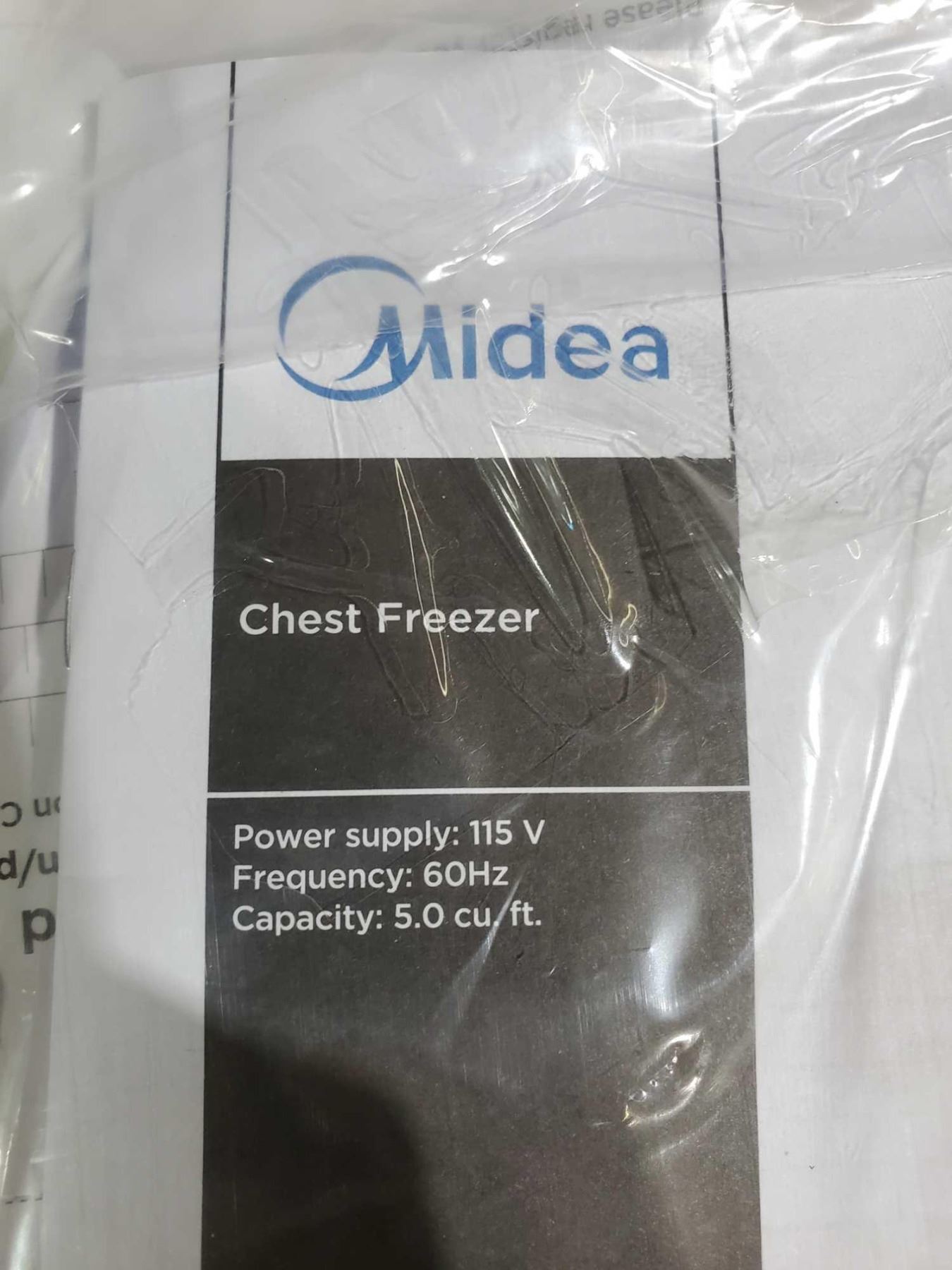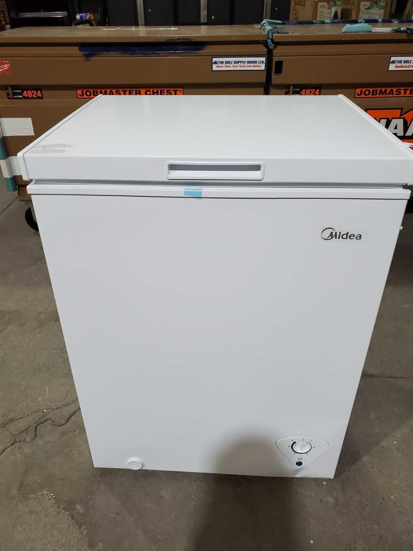 *NEW* Midea 5.0 Cu/ft Chest Freezer 115 V - White - 34Tx25Wx21D **DAMAGE TO BOTTOM RIGHT REAR CORNER**
