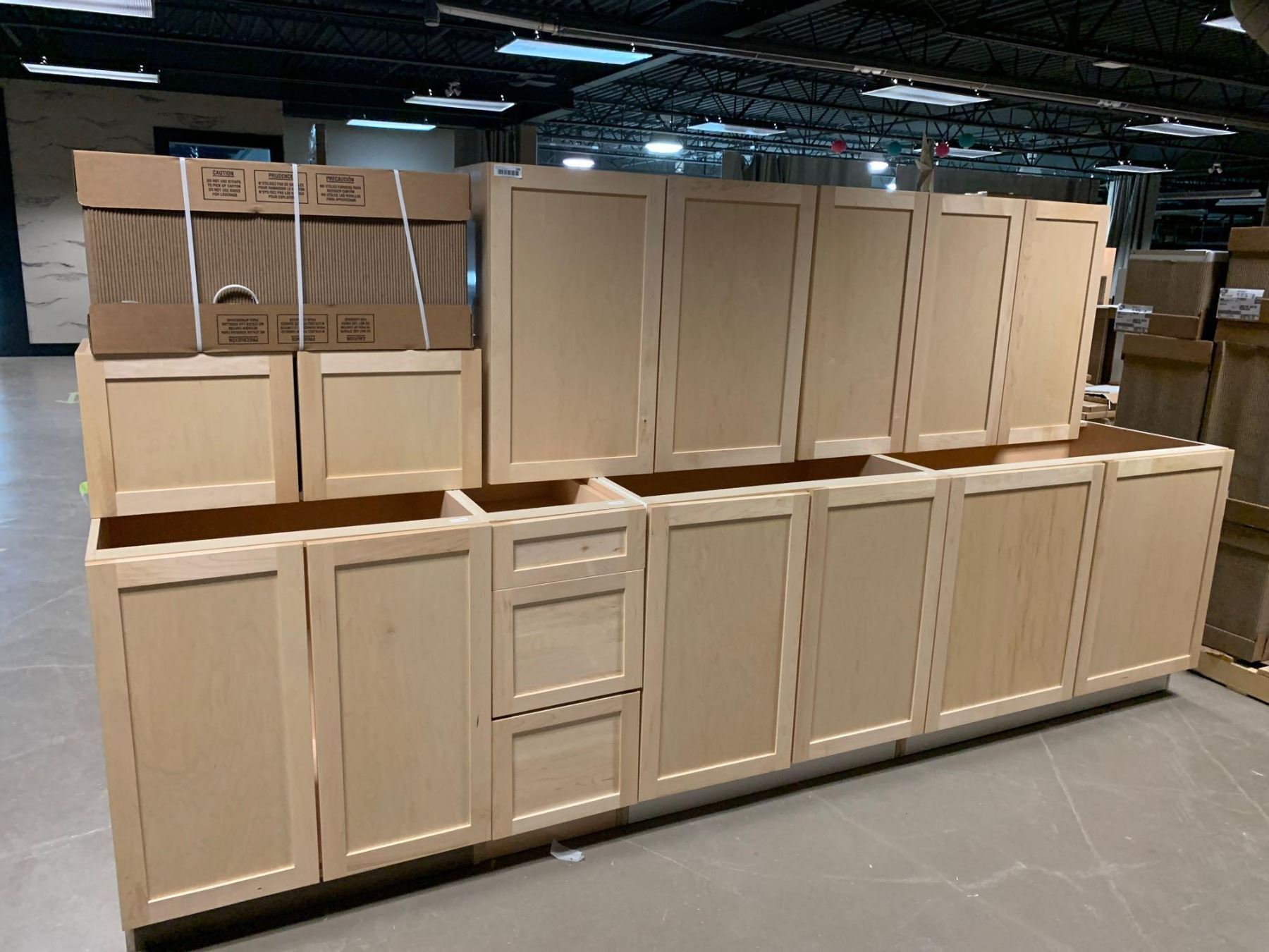 NEW Natural Maple 8 piece Kitchen Cabinet Set includes 4 base cabinets 30W, 30W, 15W, 36W and 4 wall cab