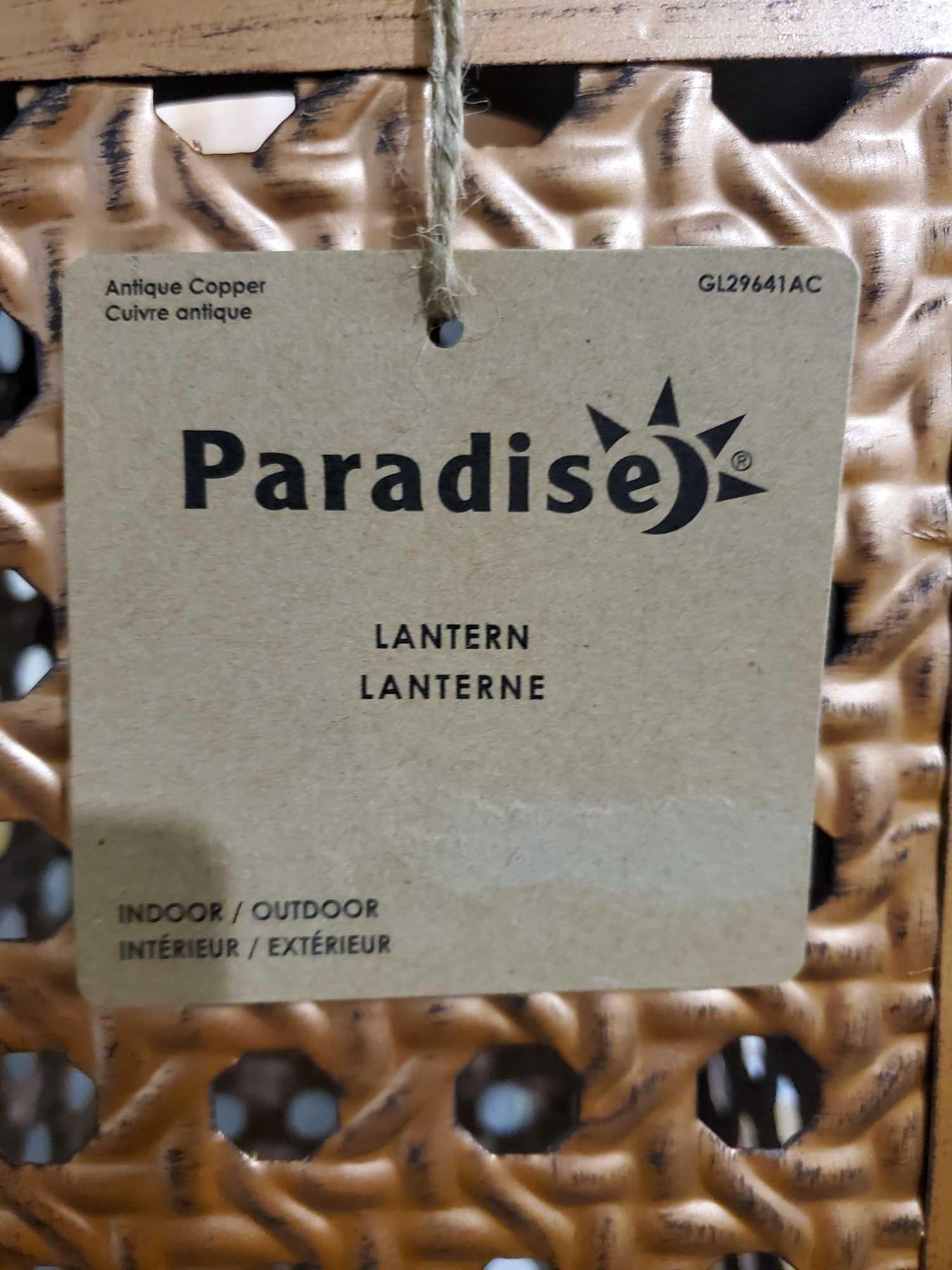 *NEW* Paradise Indoor/Outdoor Lantern with Handle - Copper Finish - 15x7x7"  Rattan Imitation