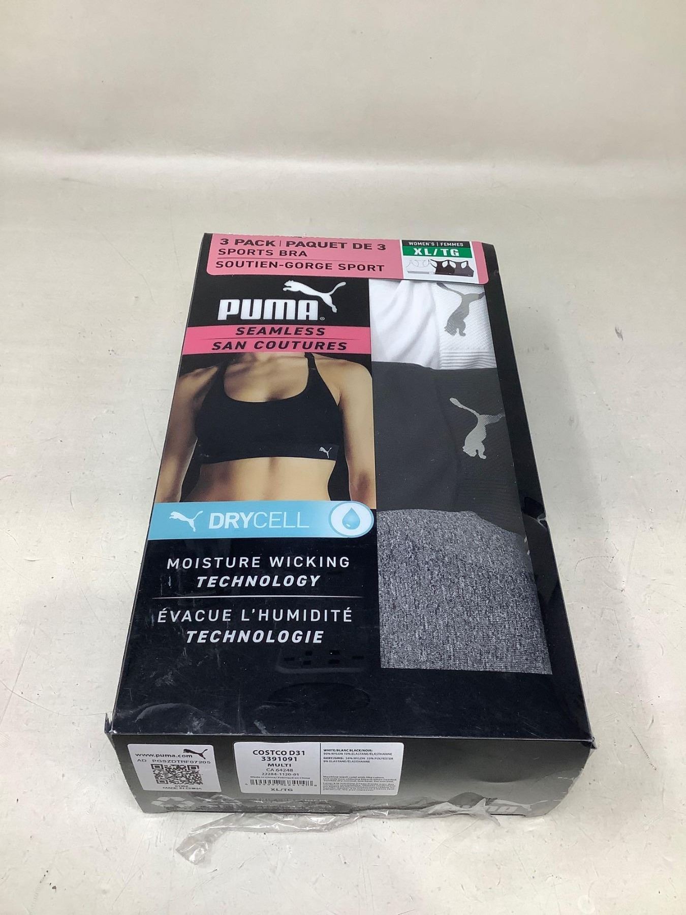 NEW Puma ladies 3 pack drycell seamless sports bras XL