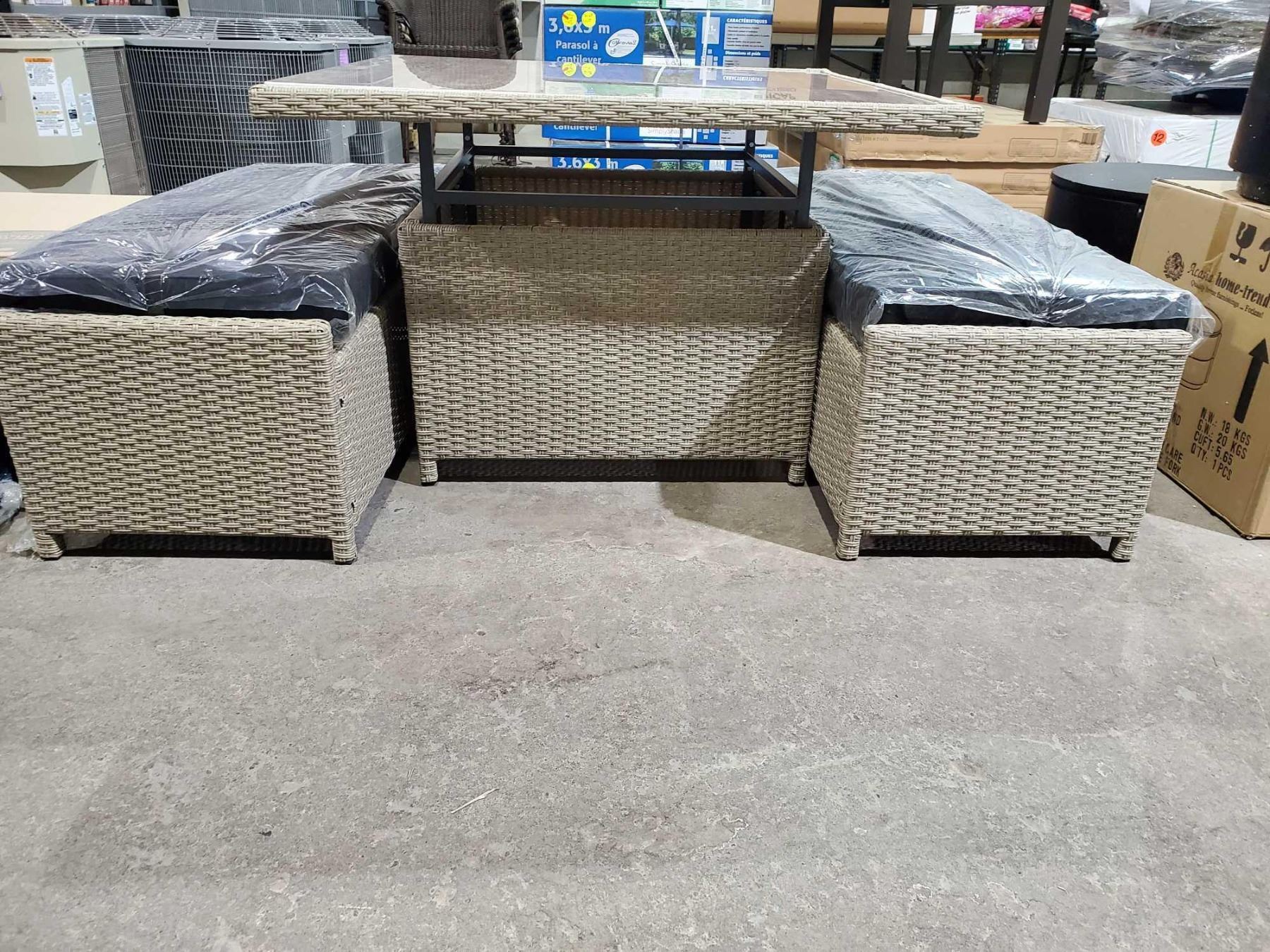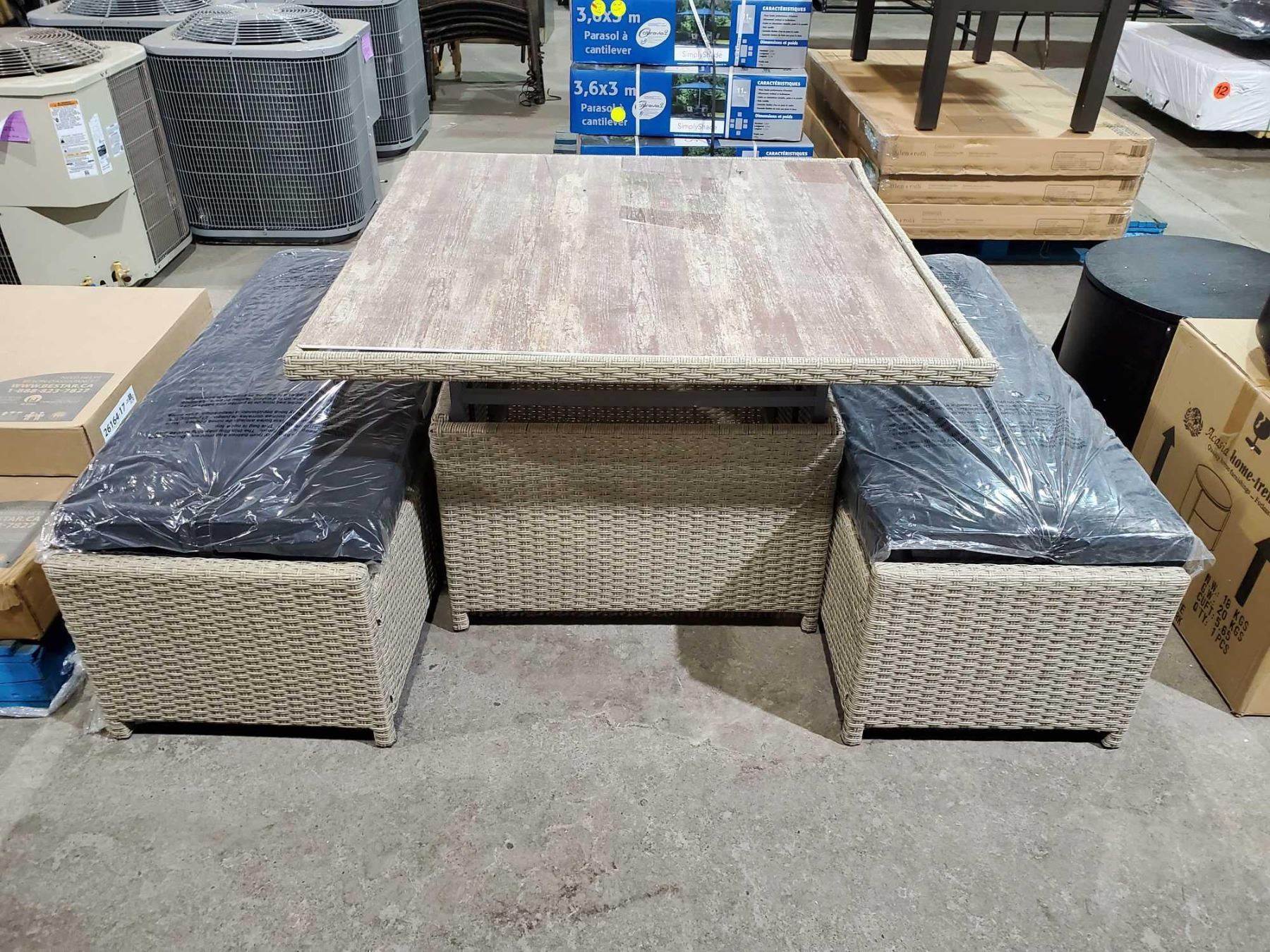 *NEW* Rattan Style Patio Table with 2 Cushioned Bench Seats
