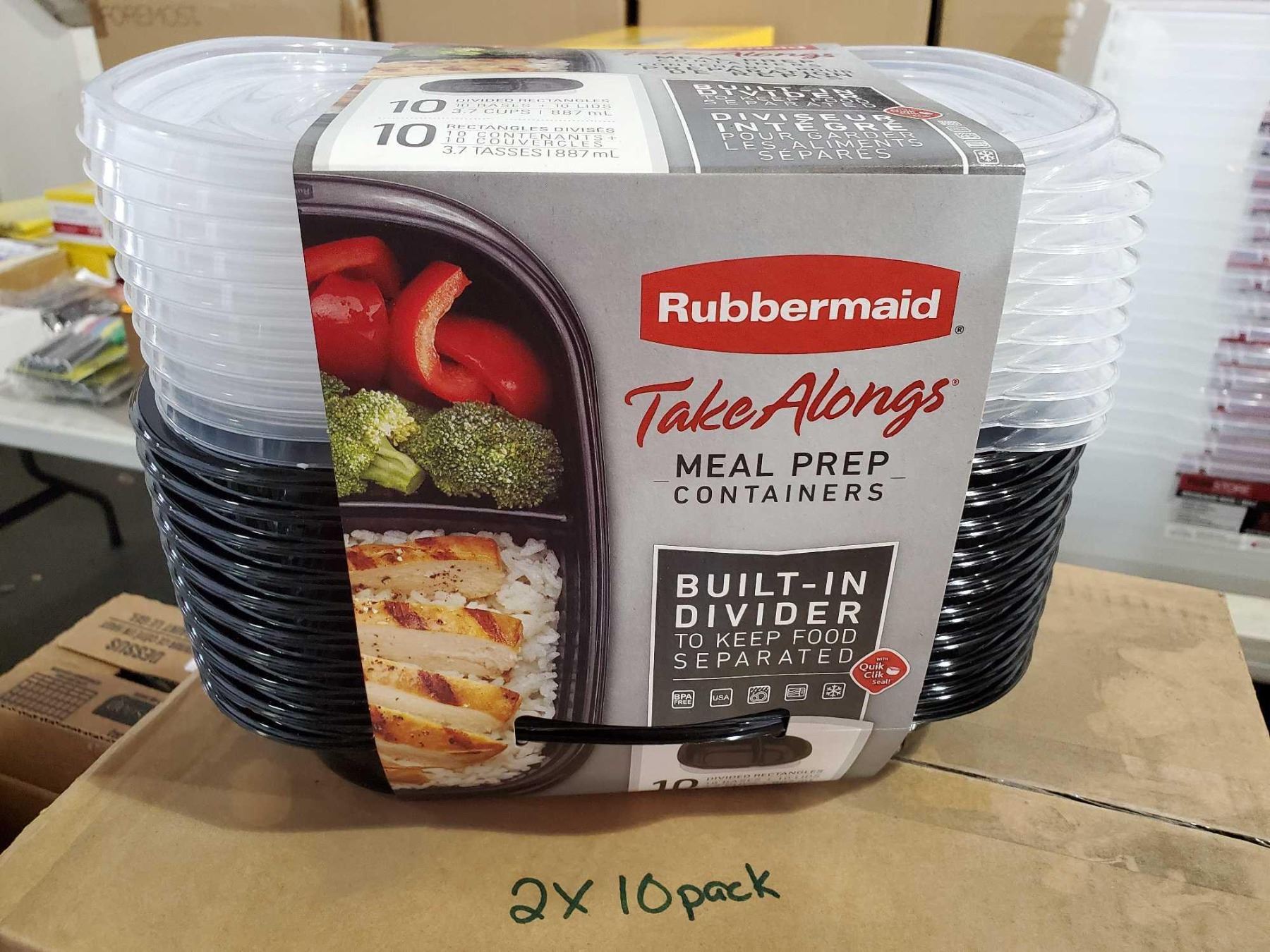 NEW Rubbermaid Take Alongs Divided Meal Prep Containers with Lids - 2X10 Pack