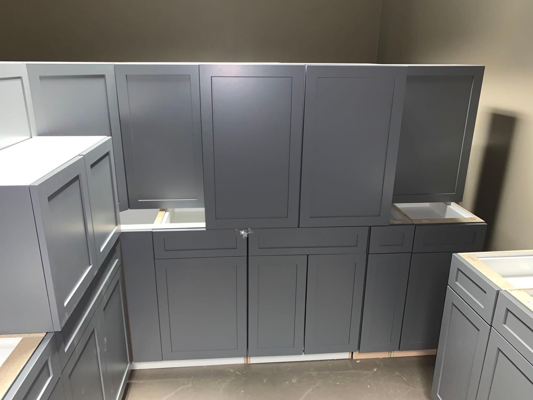 NEW S.Cloud Gray - 15 Piece Kitchen Cabinet Set includes 7 Base & 8 Wall Upper Cabinets Approx wall measurement 80"x104"