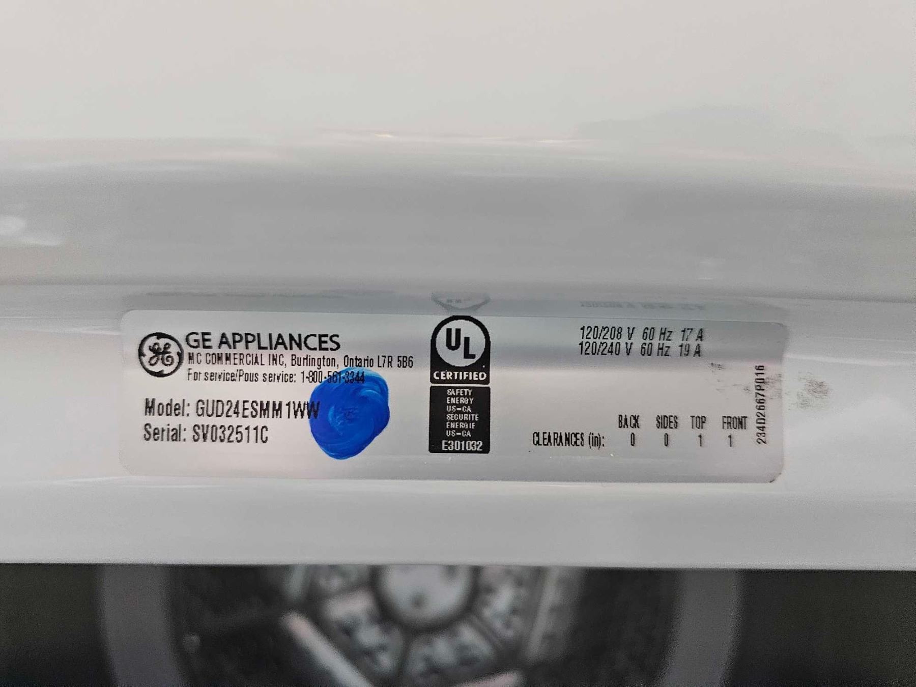 * NEW Scratch & Dent * GE GUD24ESMMWW Washer & Dryer Set, 24 inch, 24 inch Width, 2.6 cu. ft. Washer Capacity, 4.4 cu. ft. Dryer Capacity, Electric, 9 Wash Cycles, 750 RPM Washer Spin Speed, White colour