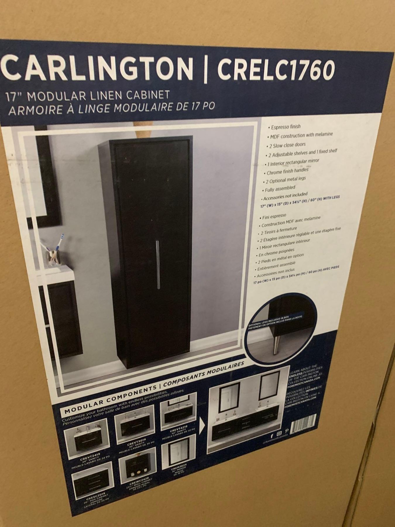 NEW in box Carlington 17" Linen Cabinet esspresso