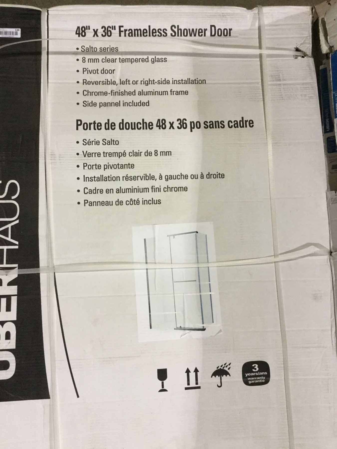 NEWUberHaus48" x 36" Frameless Shower Door