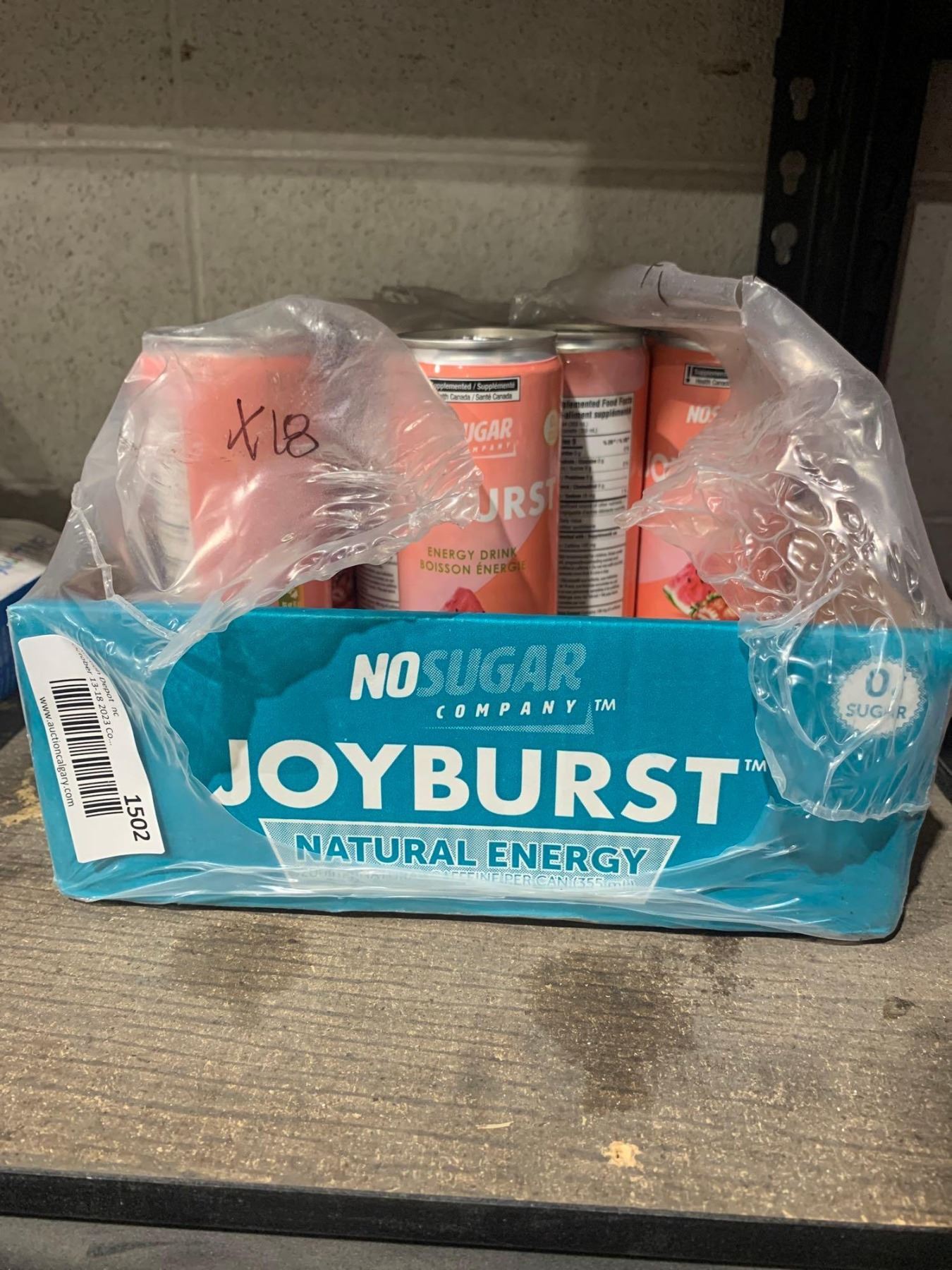 NOSUGAR Joyburst Natural Energy Drink - Lot of 18 x 355mL