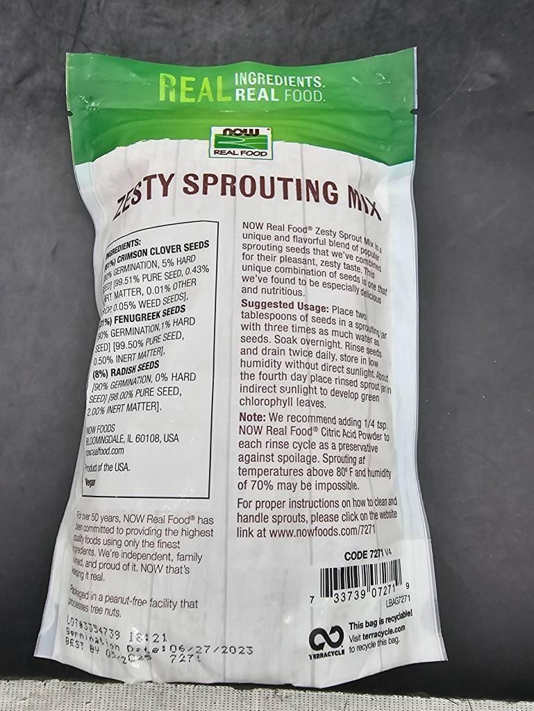 NOW Real Food Zesty Sprouting Mix 16 Oz (454g) – Clover, Fenugreek, Radish Seeds