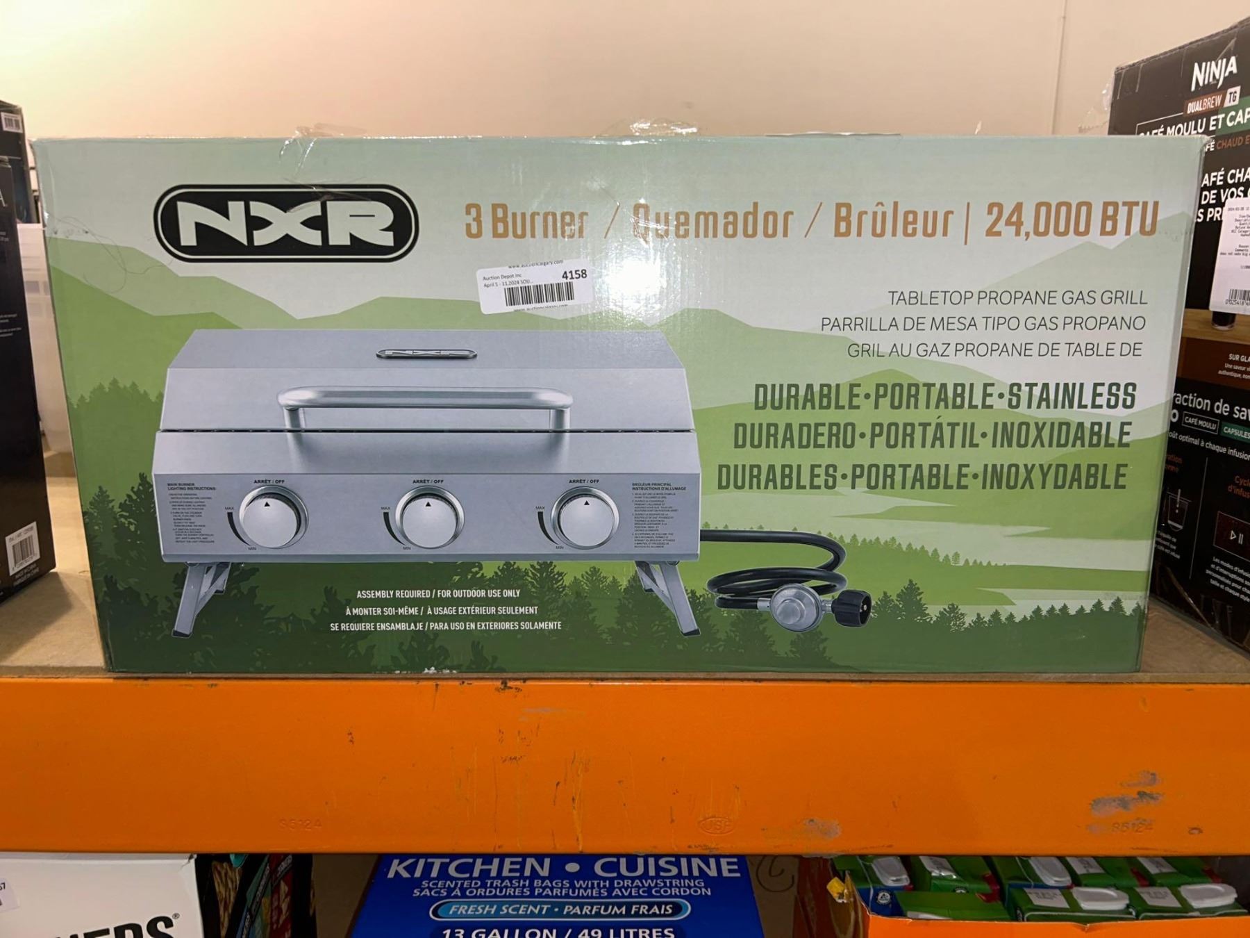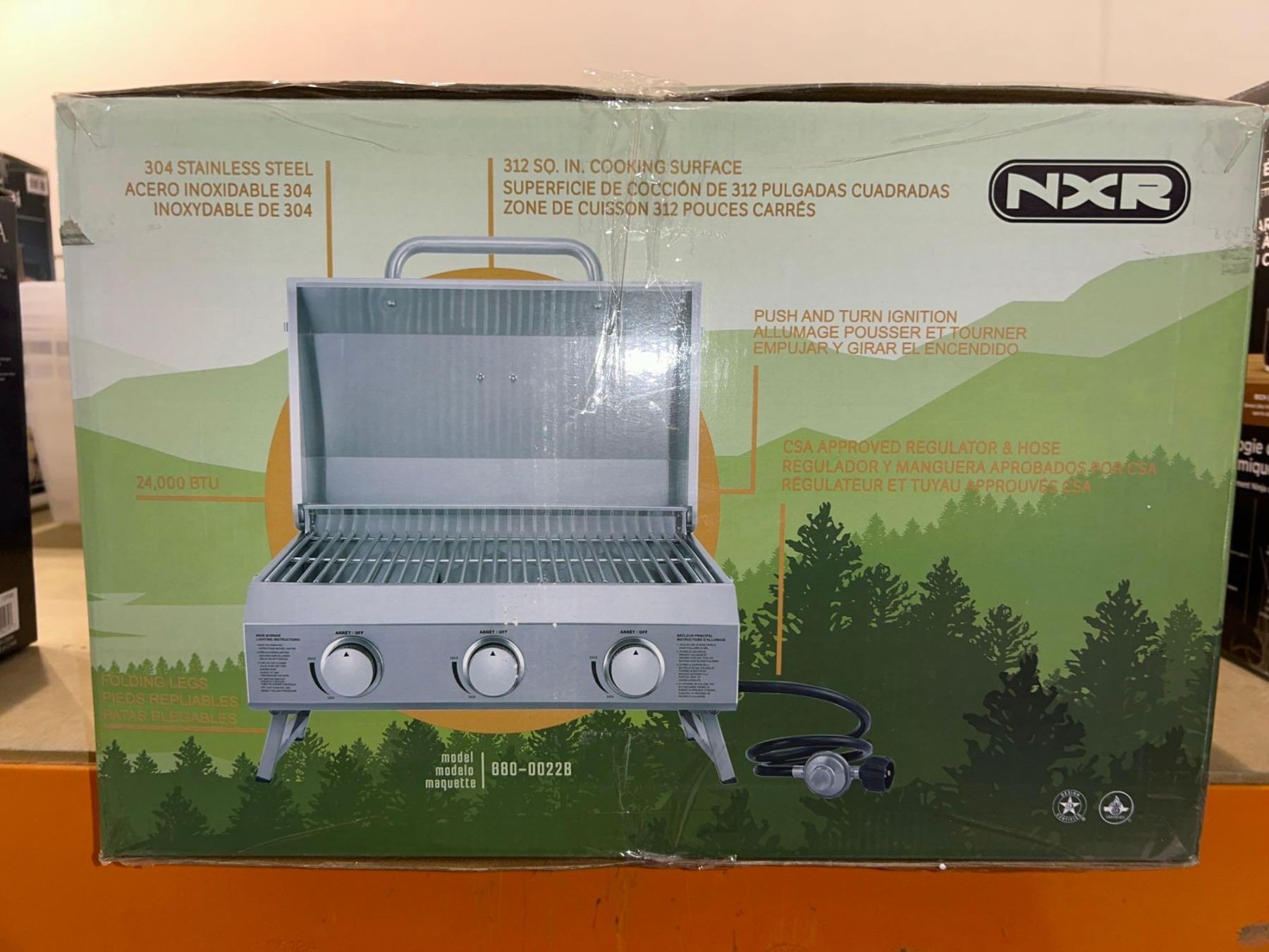 NXR 3 burner portable stainless steel propane powered table top bbq grill