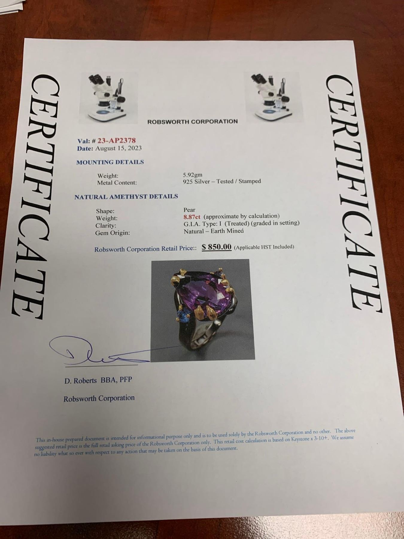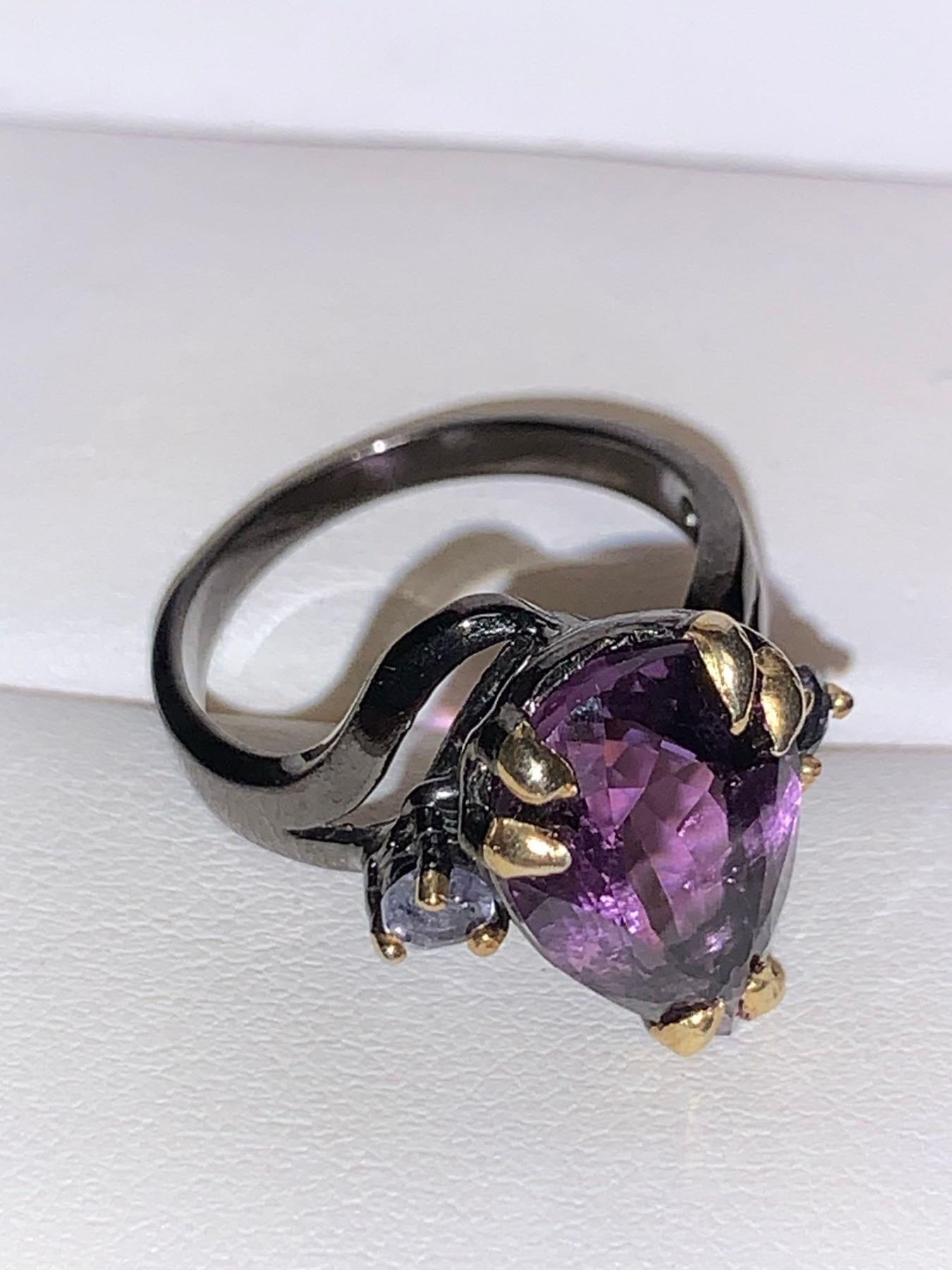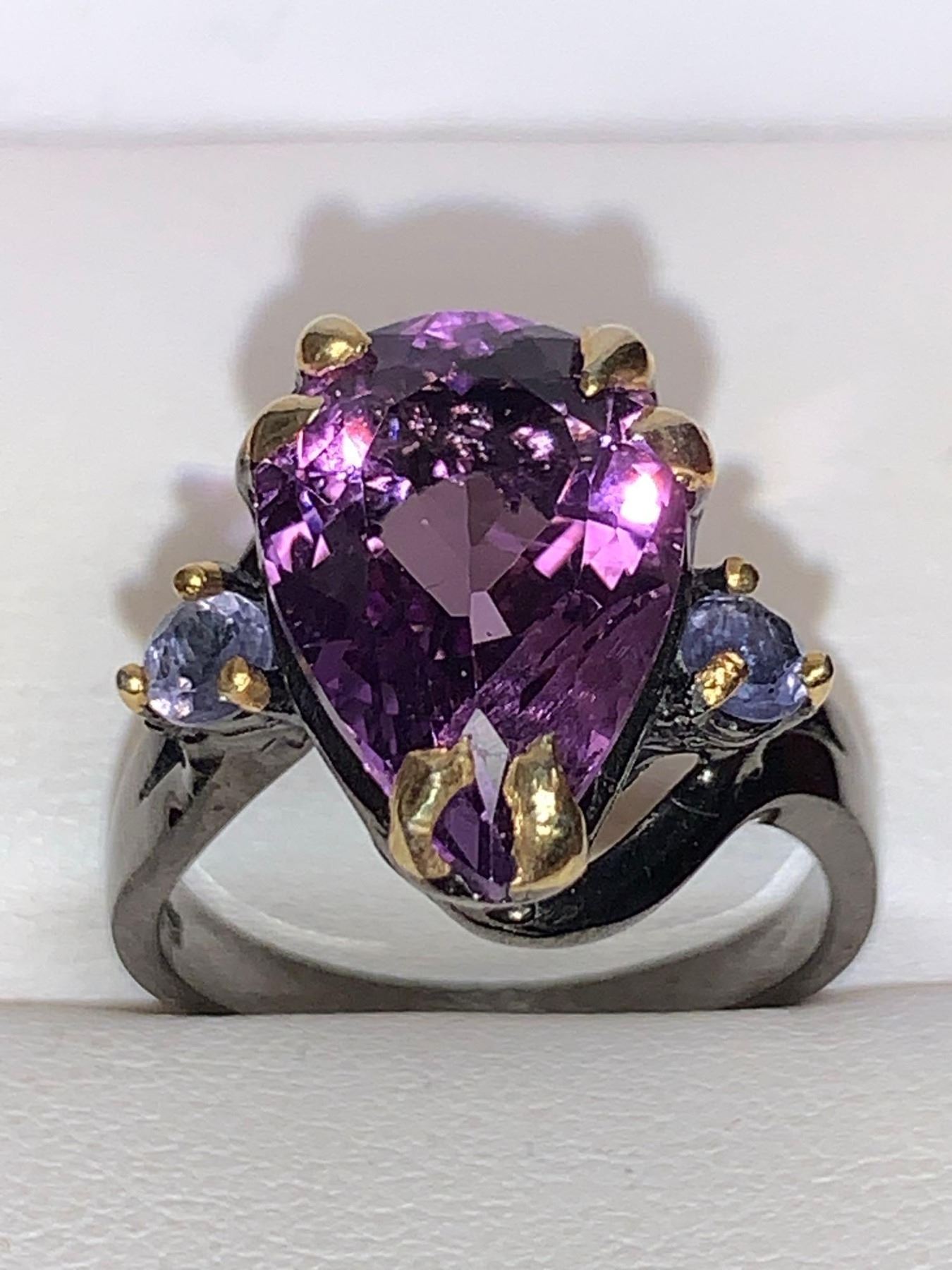 Natural Amethyst Pear Cut 8.87 Carat Solitaire .925 Silver Dress Ring Appraisal Certificate $850.00