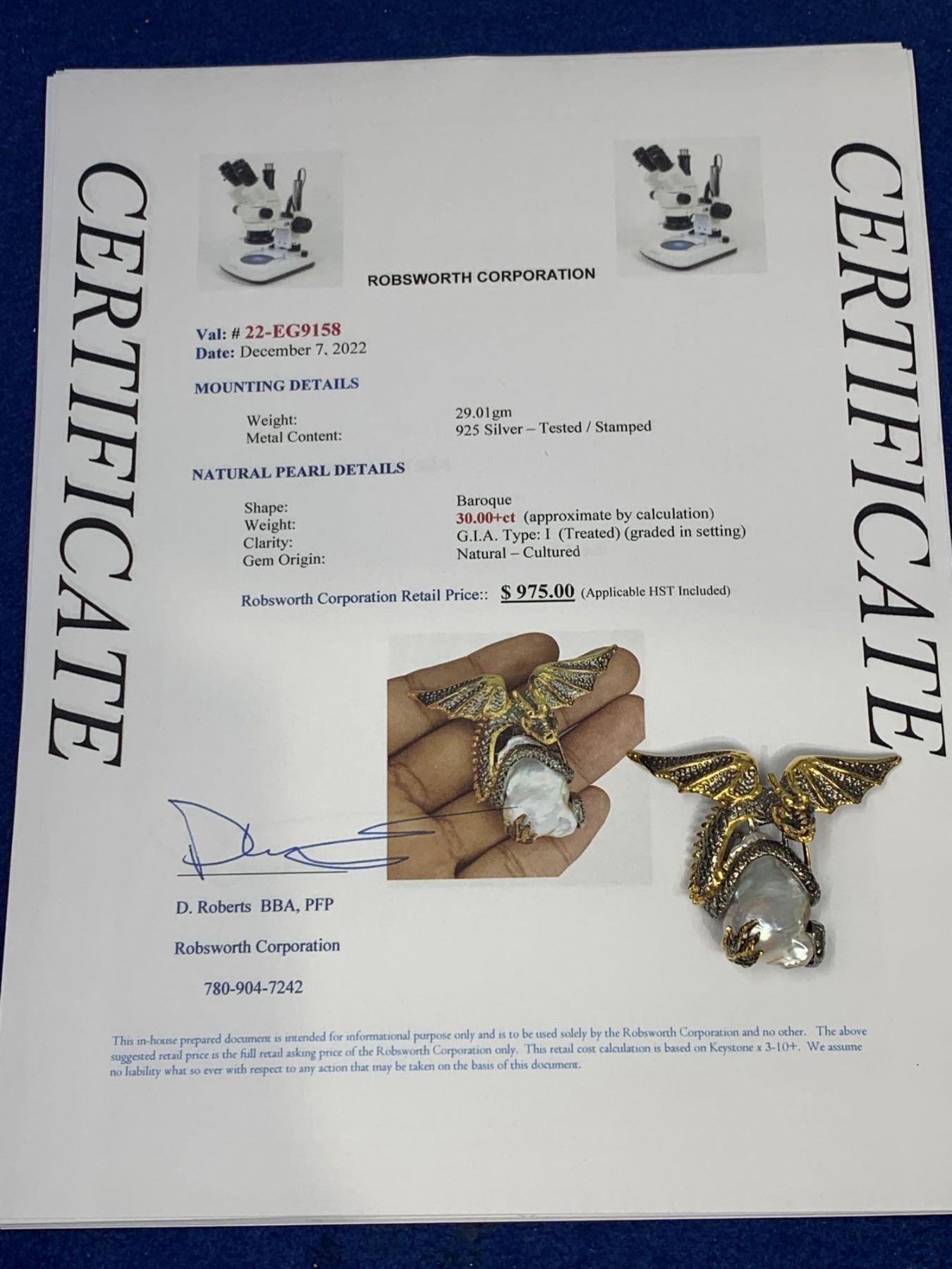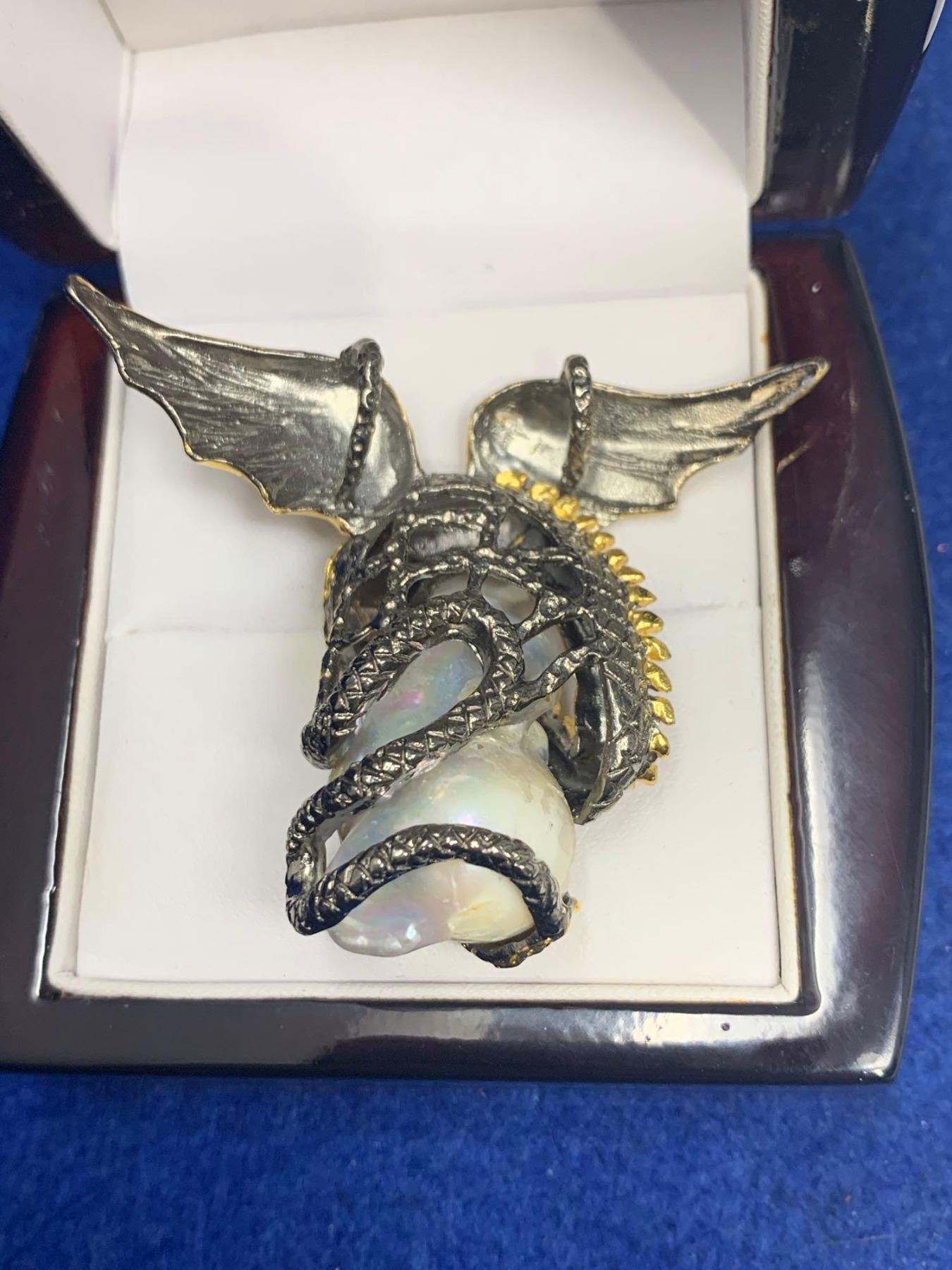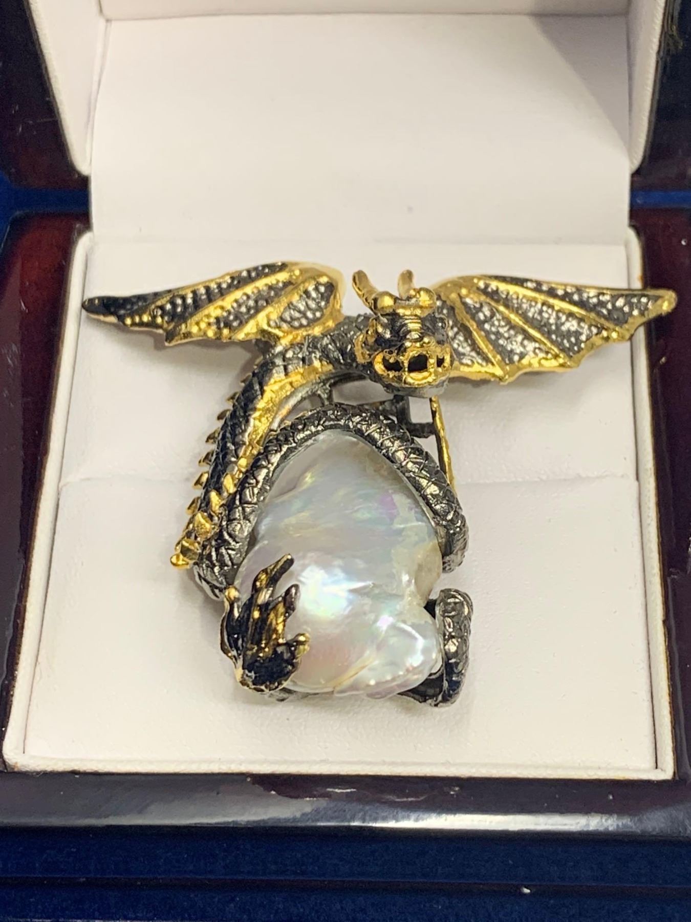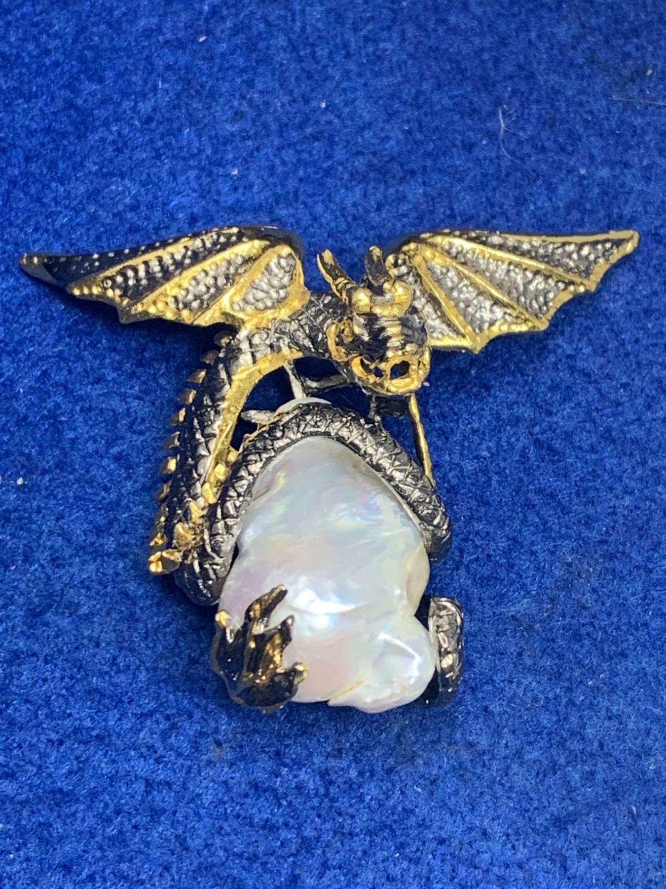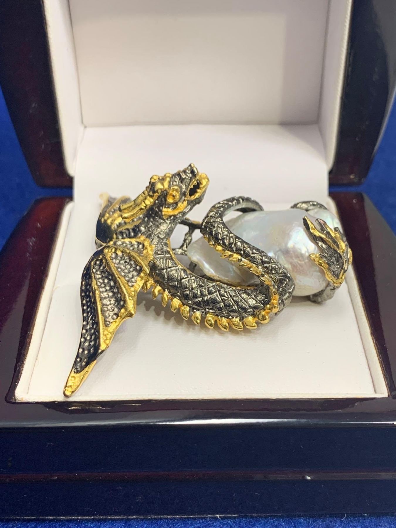 Natural Baroque 30.00 Carat Pearl sculpted .925 Silver Game of Thrones Dragon Ring with Appraisal Certificate $975.00
