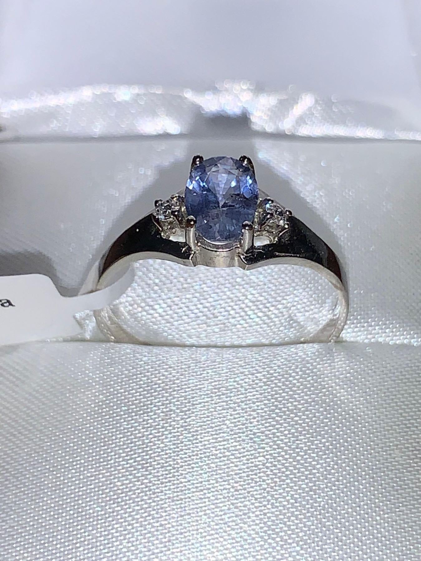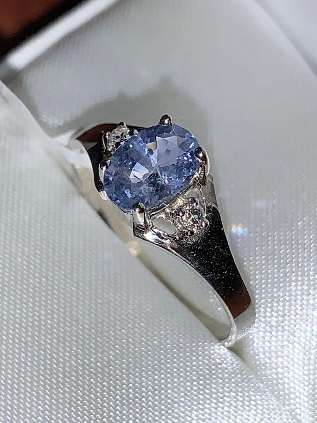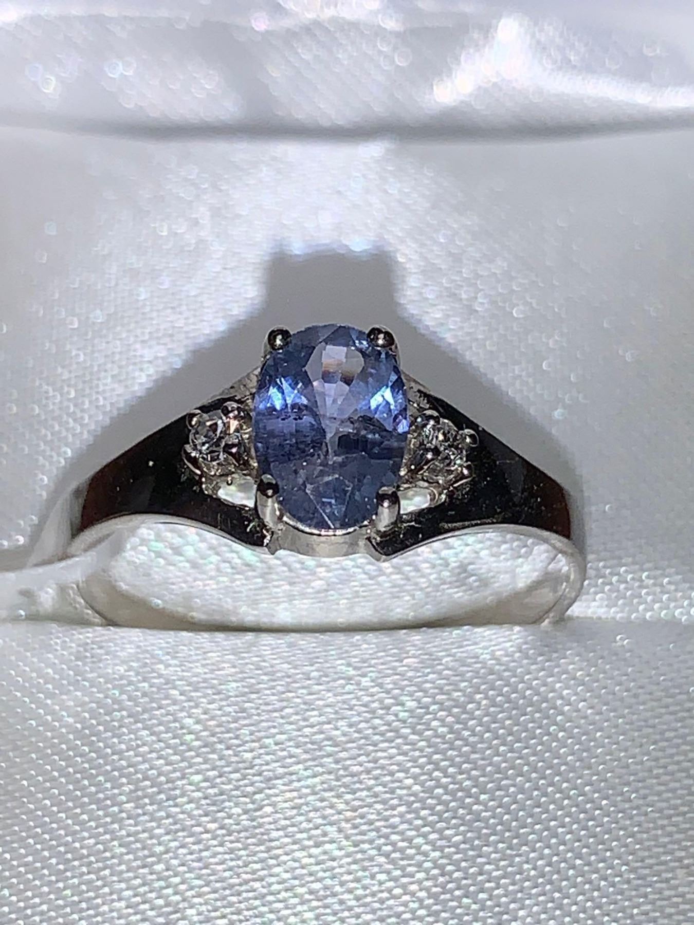 Natural Blue Sapphire Oval Cut 1.0 Carat Solitaire with side diamonds 14K White Gold Ring with Appraisal Certificate $1645.00-( size 7)