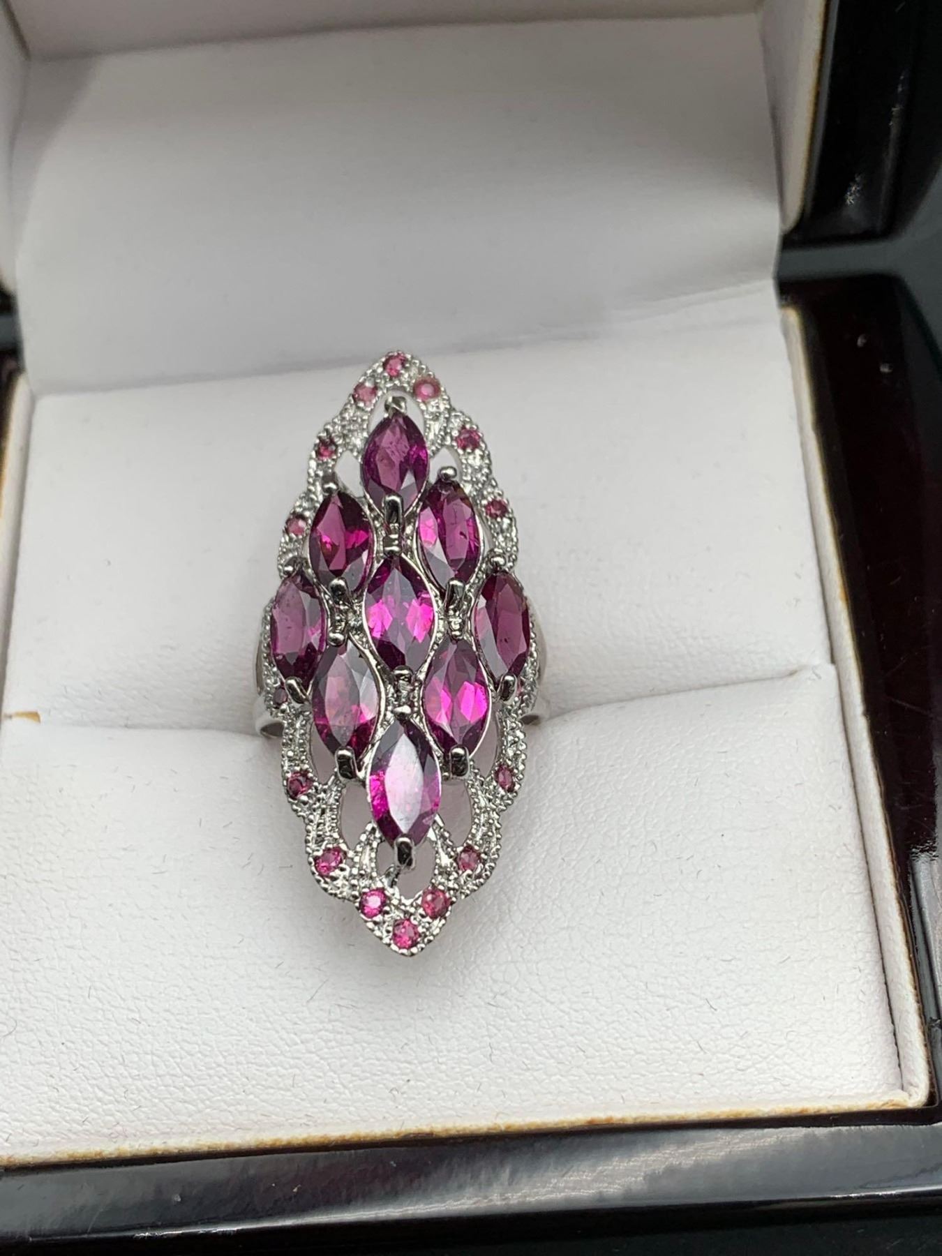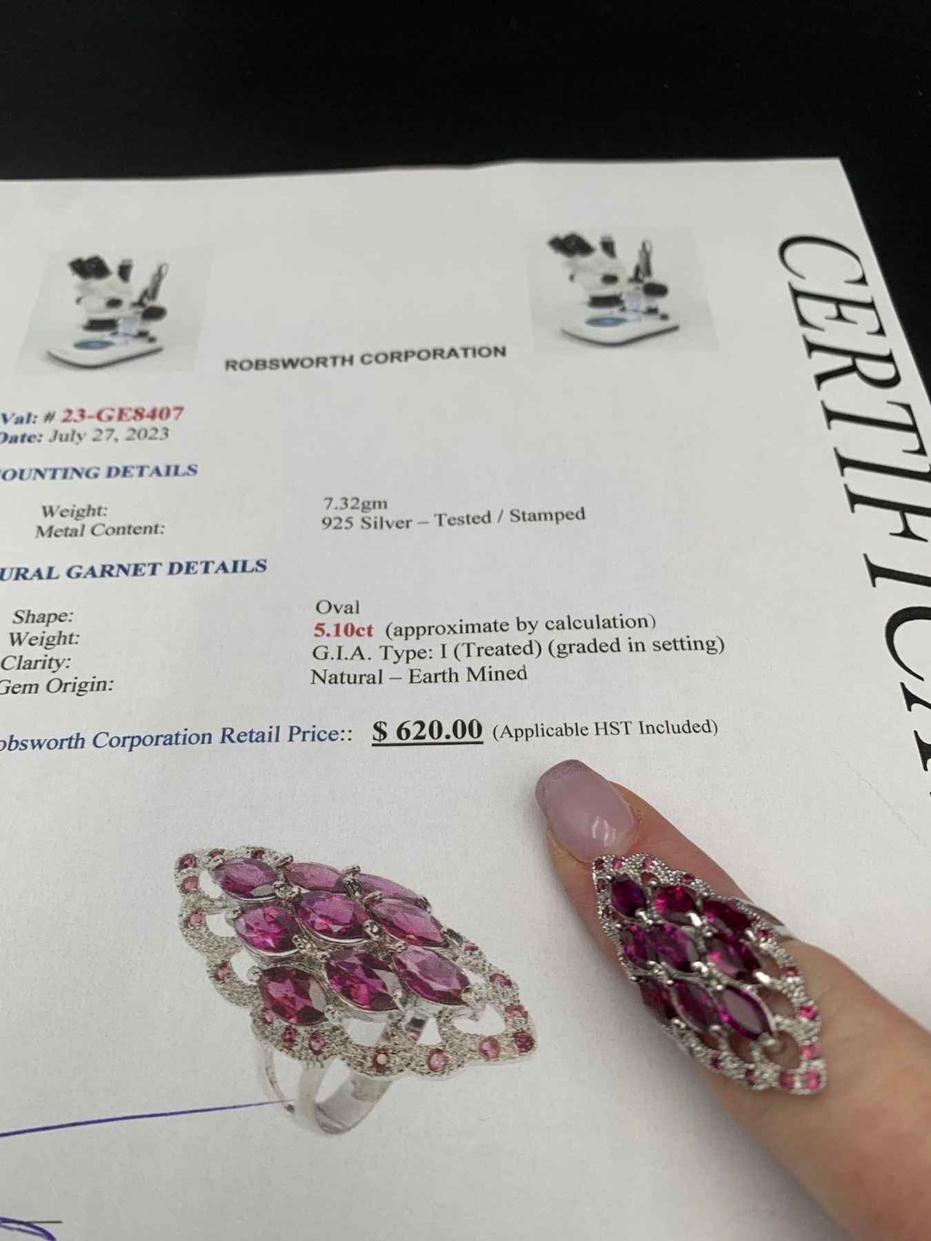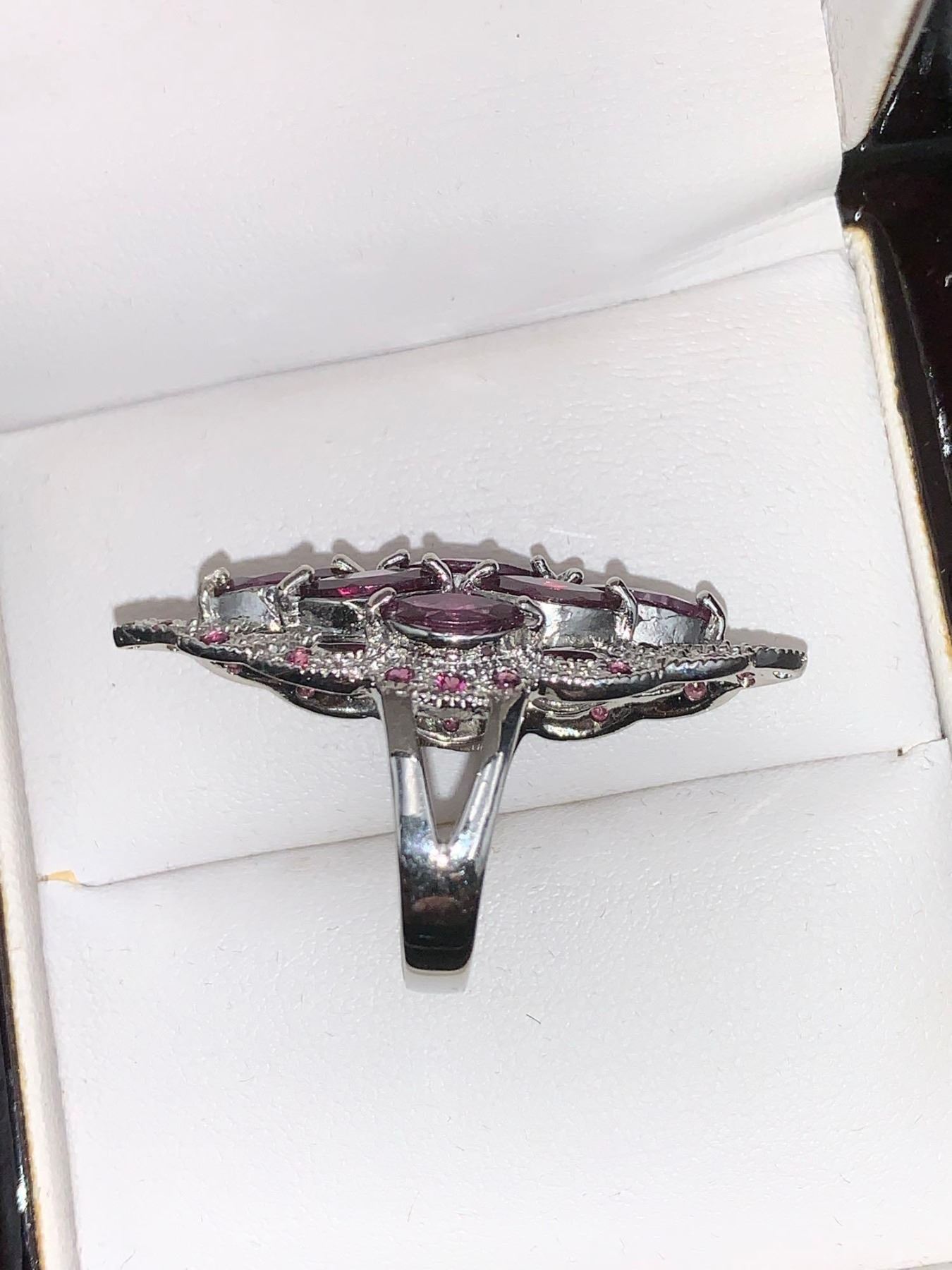 Natural Garnets 5.10 Oval Cut Cluster Ring .925 Silver with appraisal $620.00