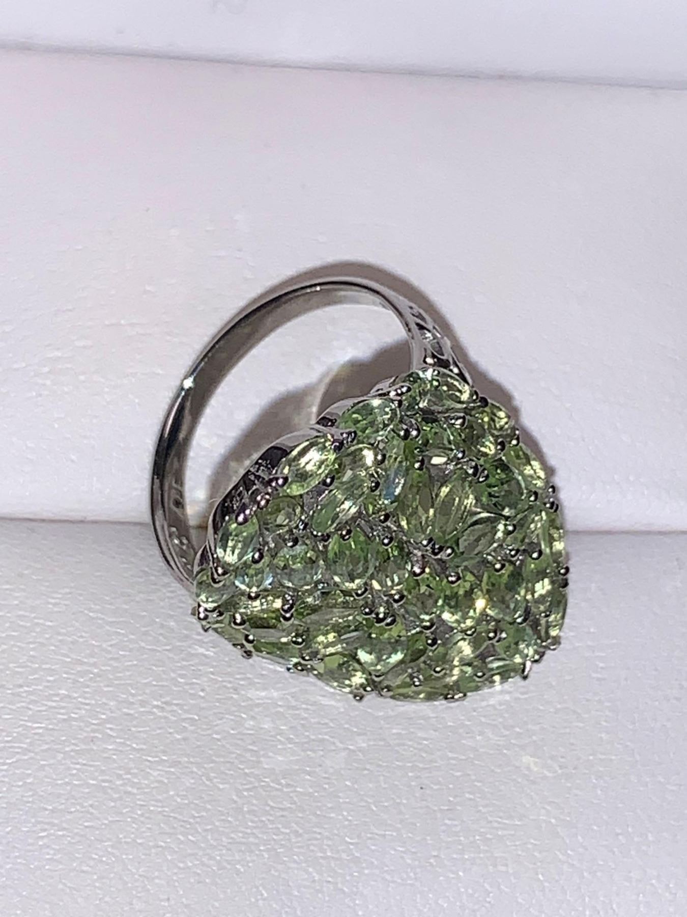 Natural Marquie Cut Peridot Cluster Ring 12.05 Carats in .925 Silver with Appraisal Certificate Value $825.00