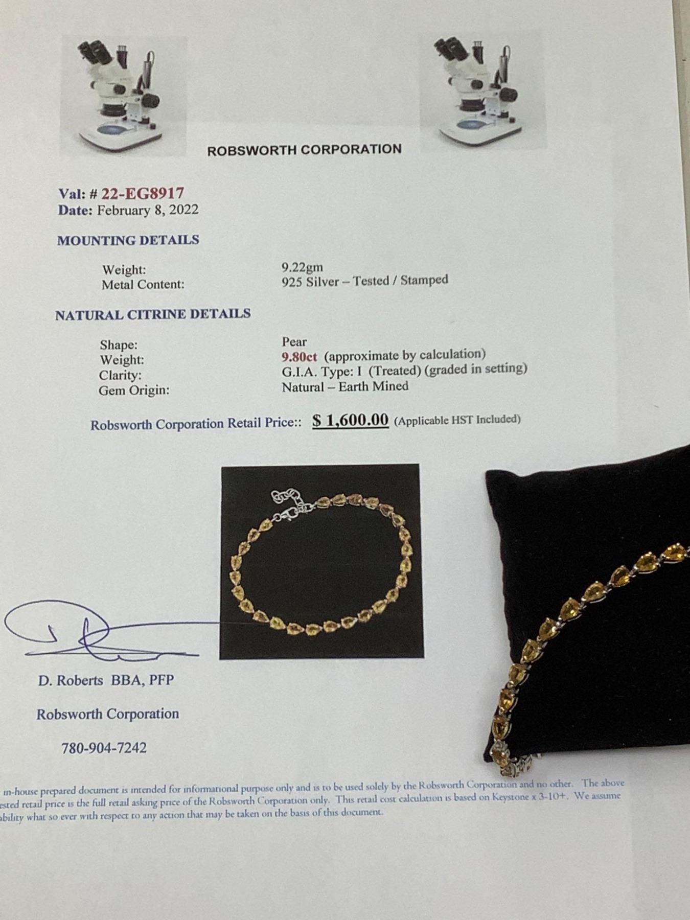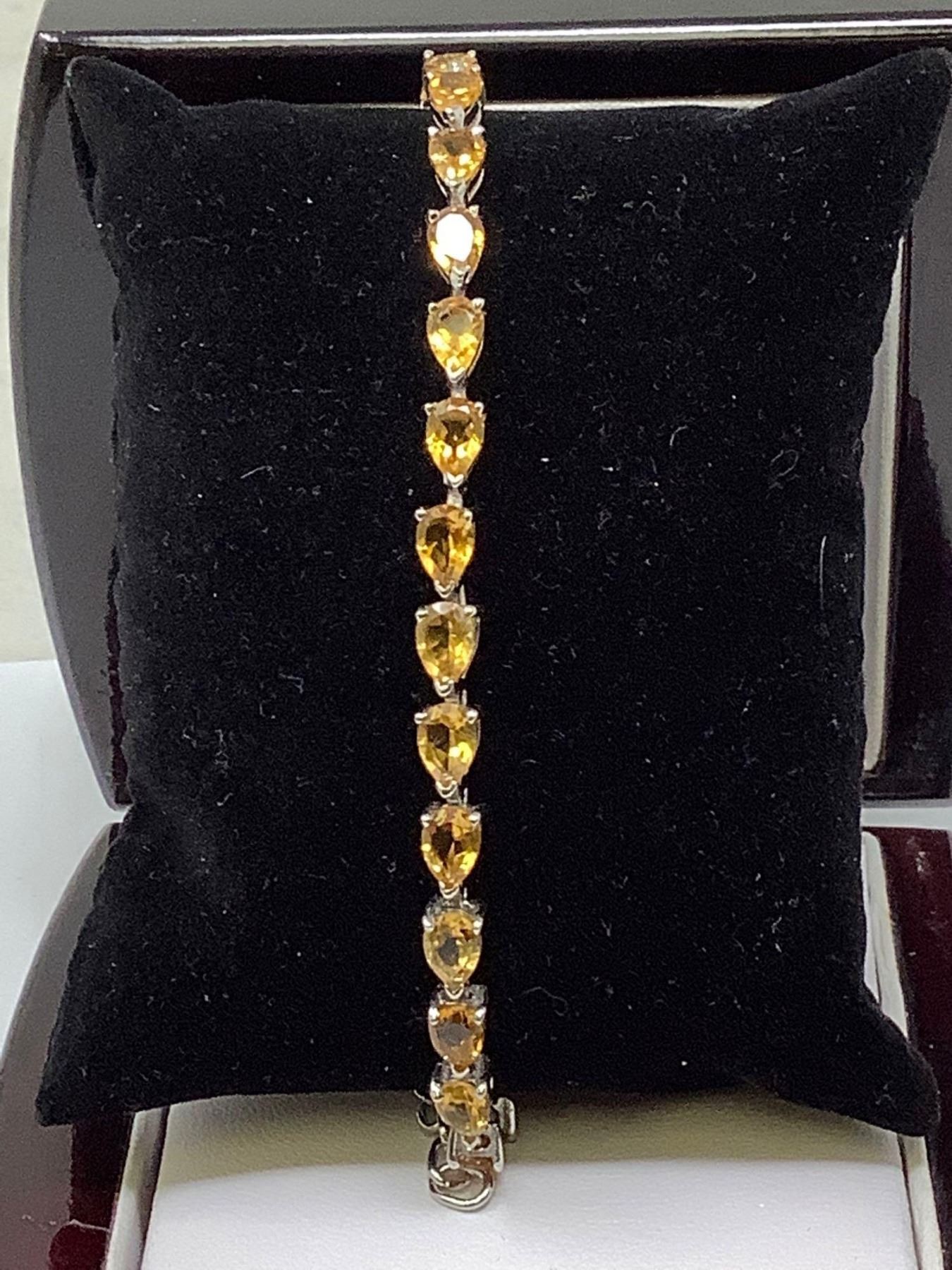 Natural Pear Cut 9.80 Carat Citrine Tennis Bracelet .925 silver with certificate value$1600.00