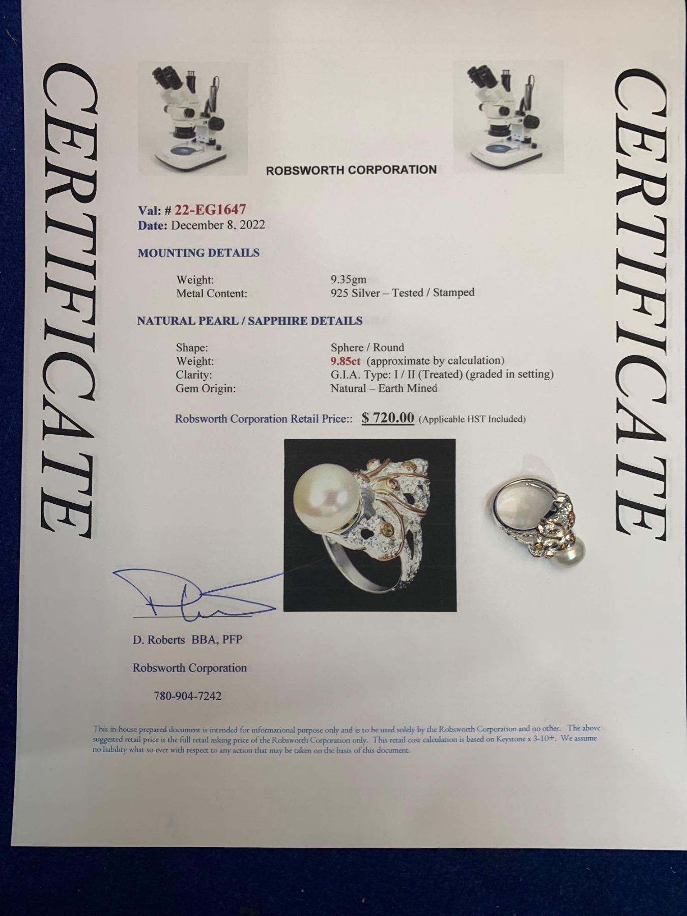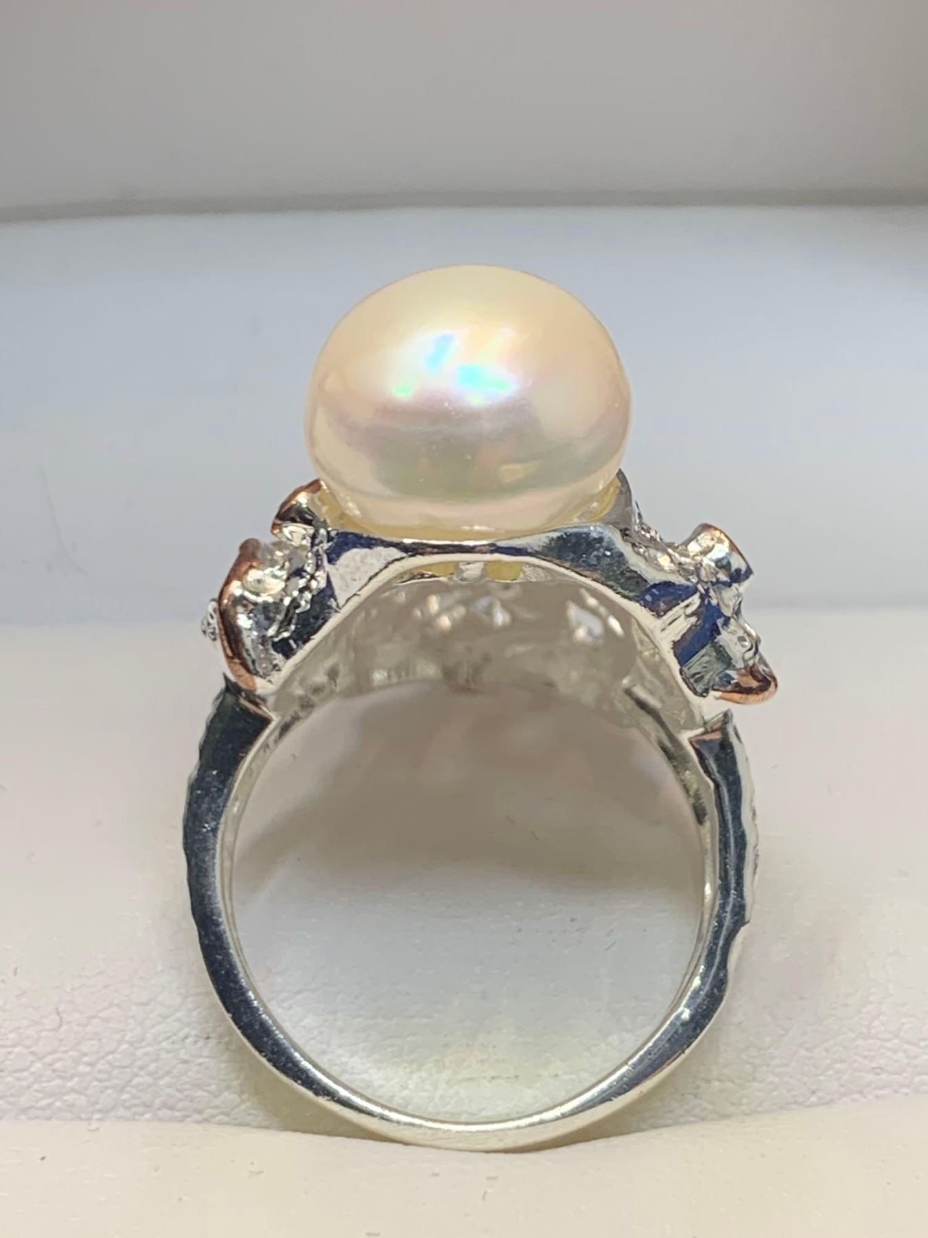 Natural Pearl and Sapphire 9.85 Carat .925 Silver Ladies Ring with Appraisal Certificate $720.00