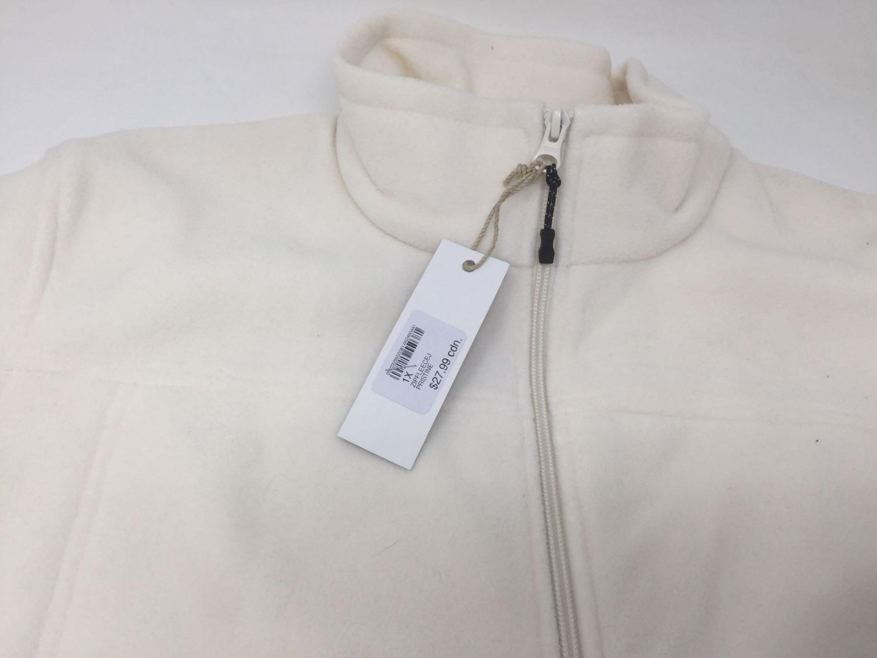 Natural Reflections White Fleece Zip Up- 1X ( Right Side Tie is torn)