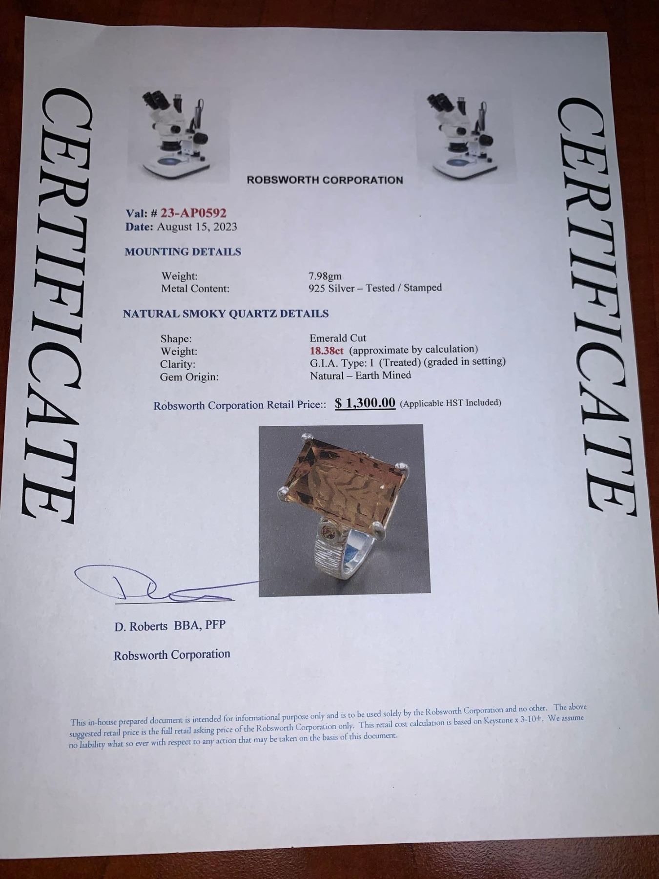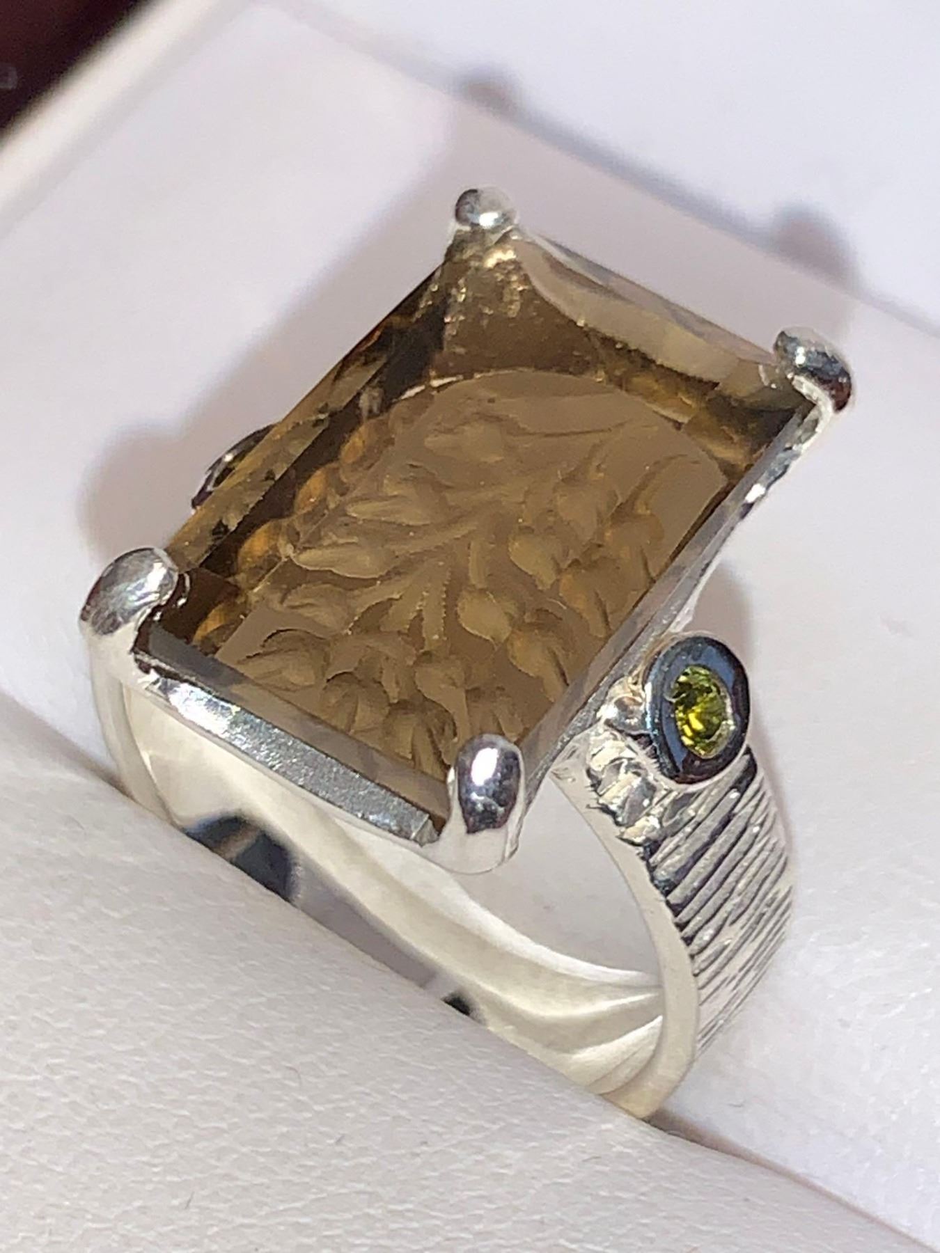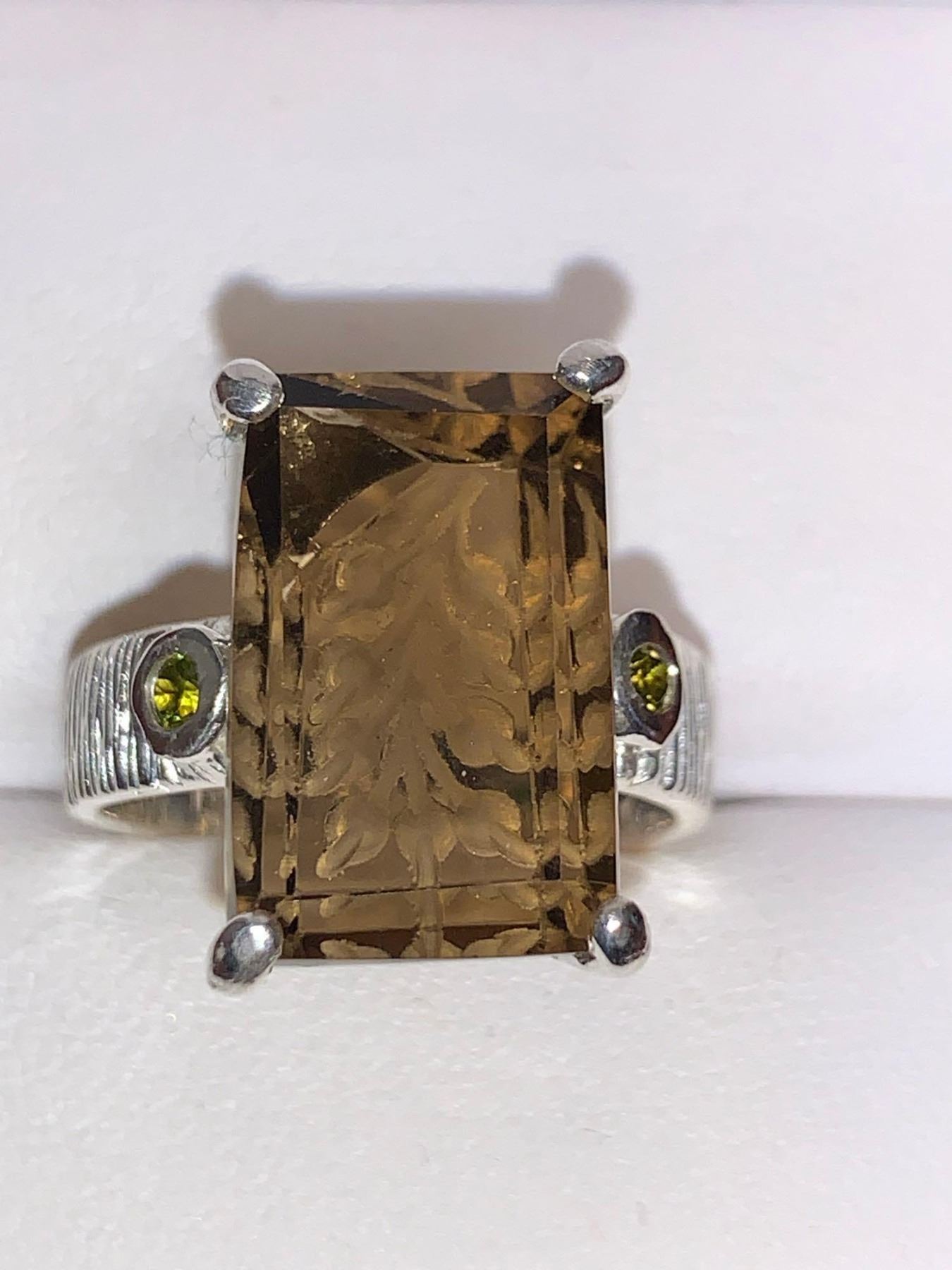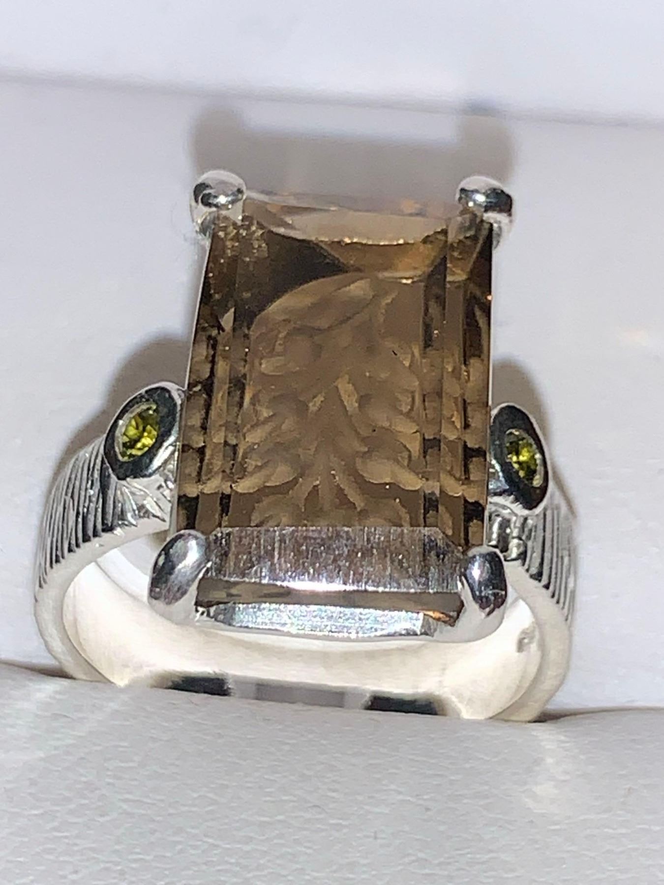 Natural Smokey Quartz Emerald cut 18.38 Carat Solitaire on .925 Silver Appraised $1300.00