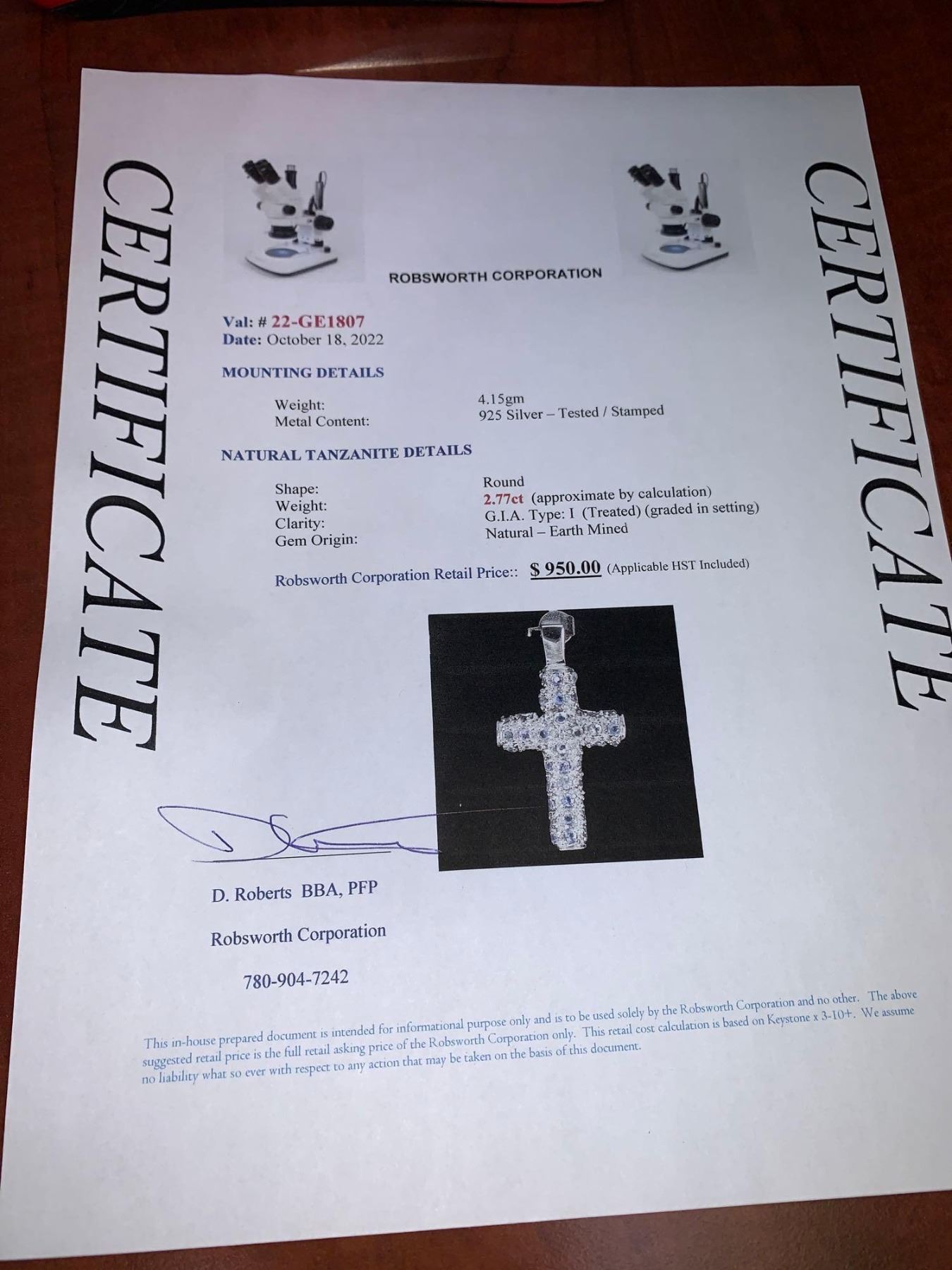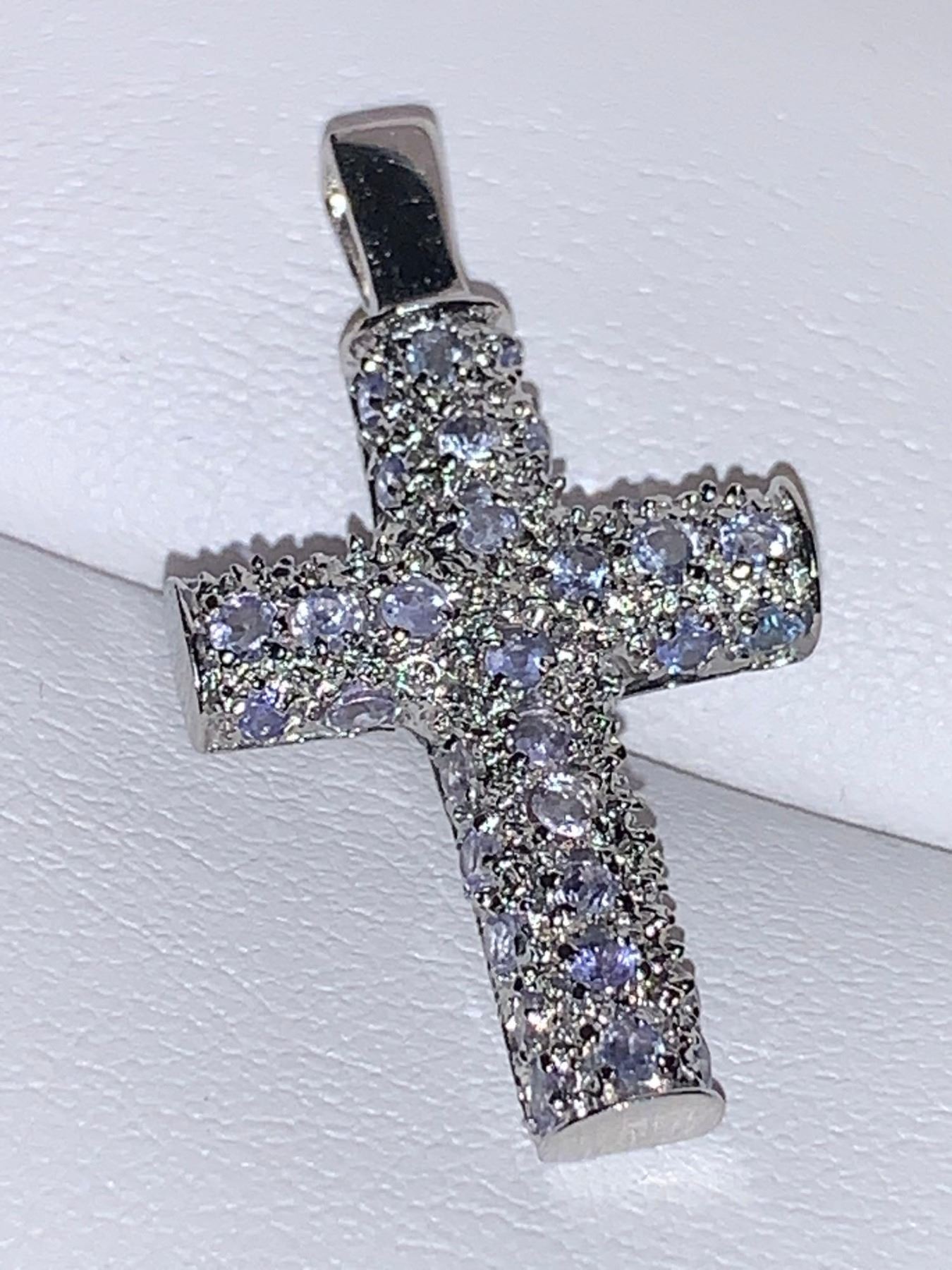 Natural Tanzanite 2.77 Carat Cluster Cross Pendant set in .925 silver certificate Value $950.00