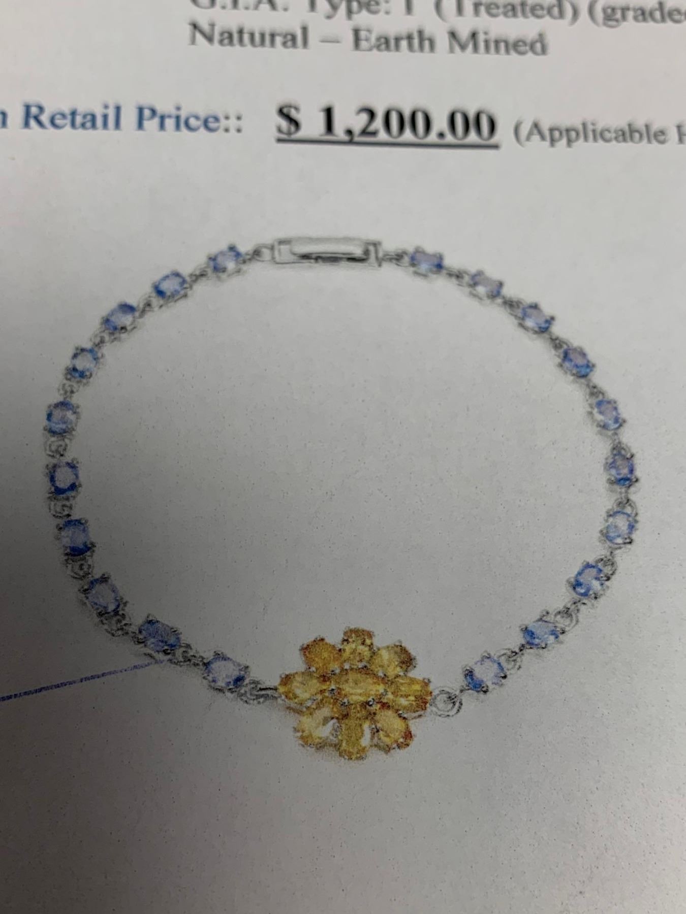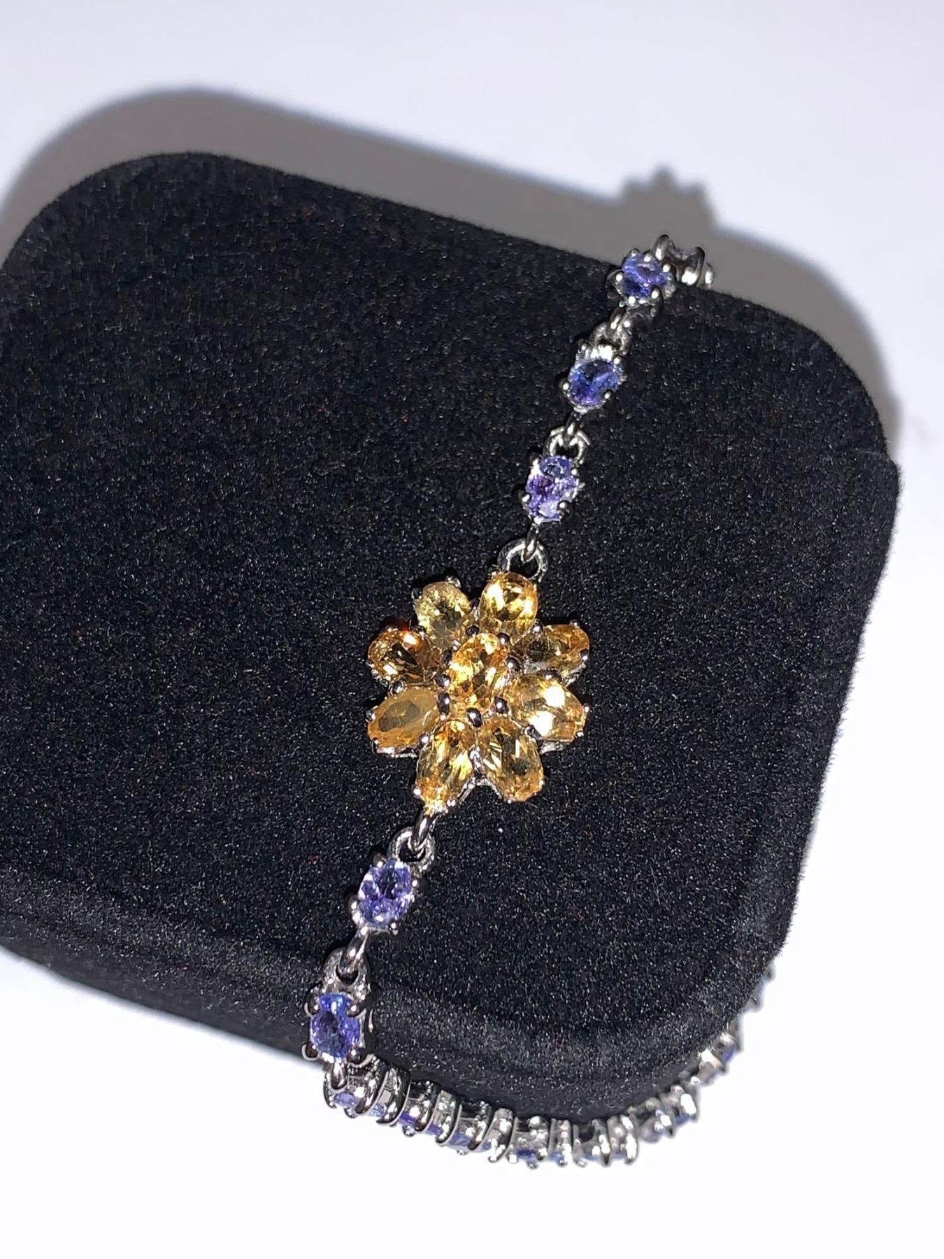 Natural citrine & Tanzanite 12,75 Carat Multi Stone Tennis Bracelet .925 Silver with Appraisal Certificate Value $1200.00