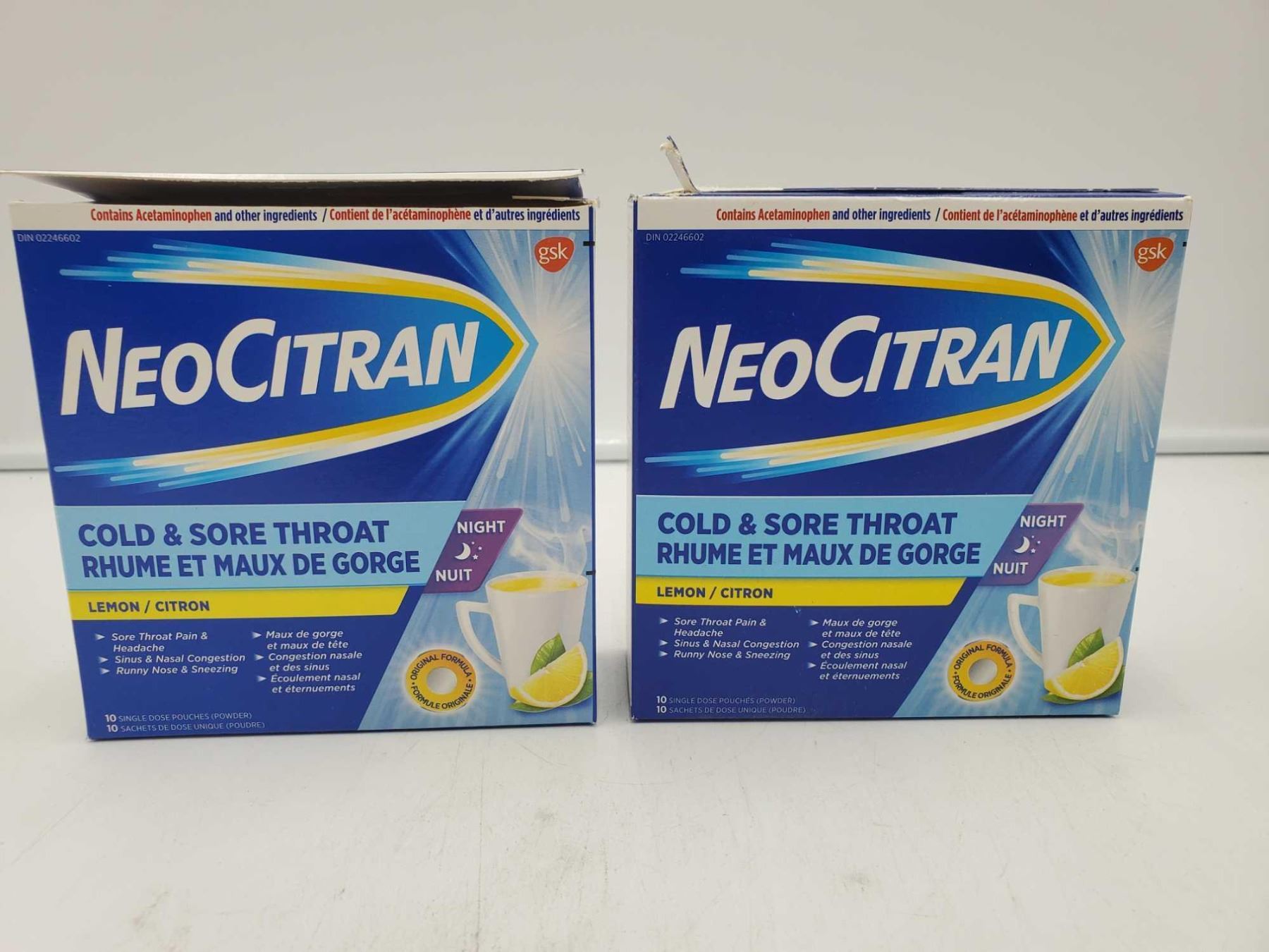 NeoCitran Cold & Sore Throat Lemon Flavour-Night Formula (2 x 10 doses)