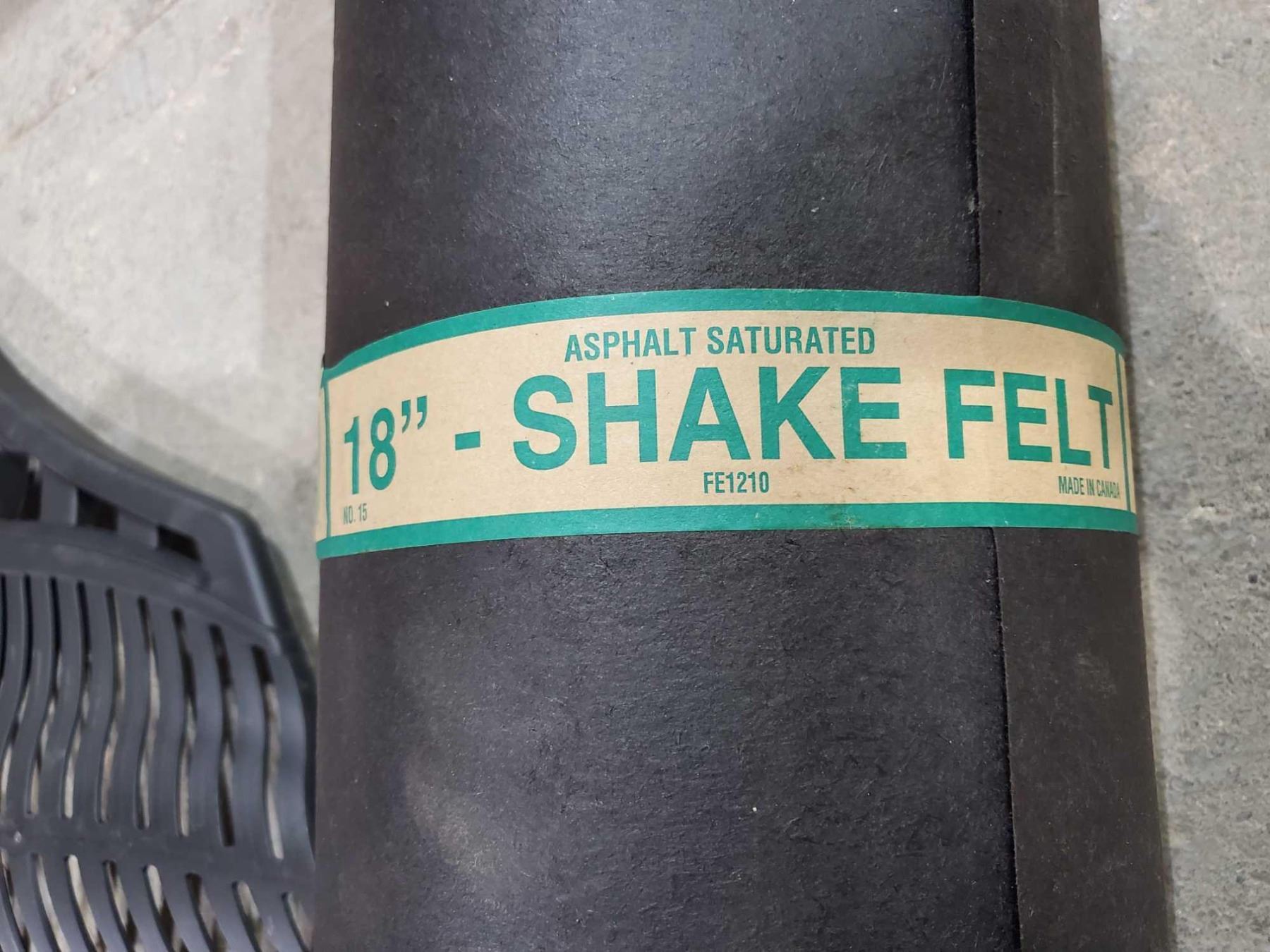 New Roll of ashphalt Roof Shake Felt 18  wide - 215Sq ft/roll