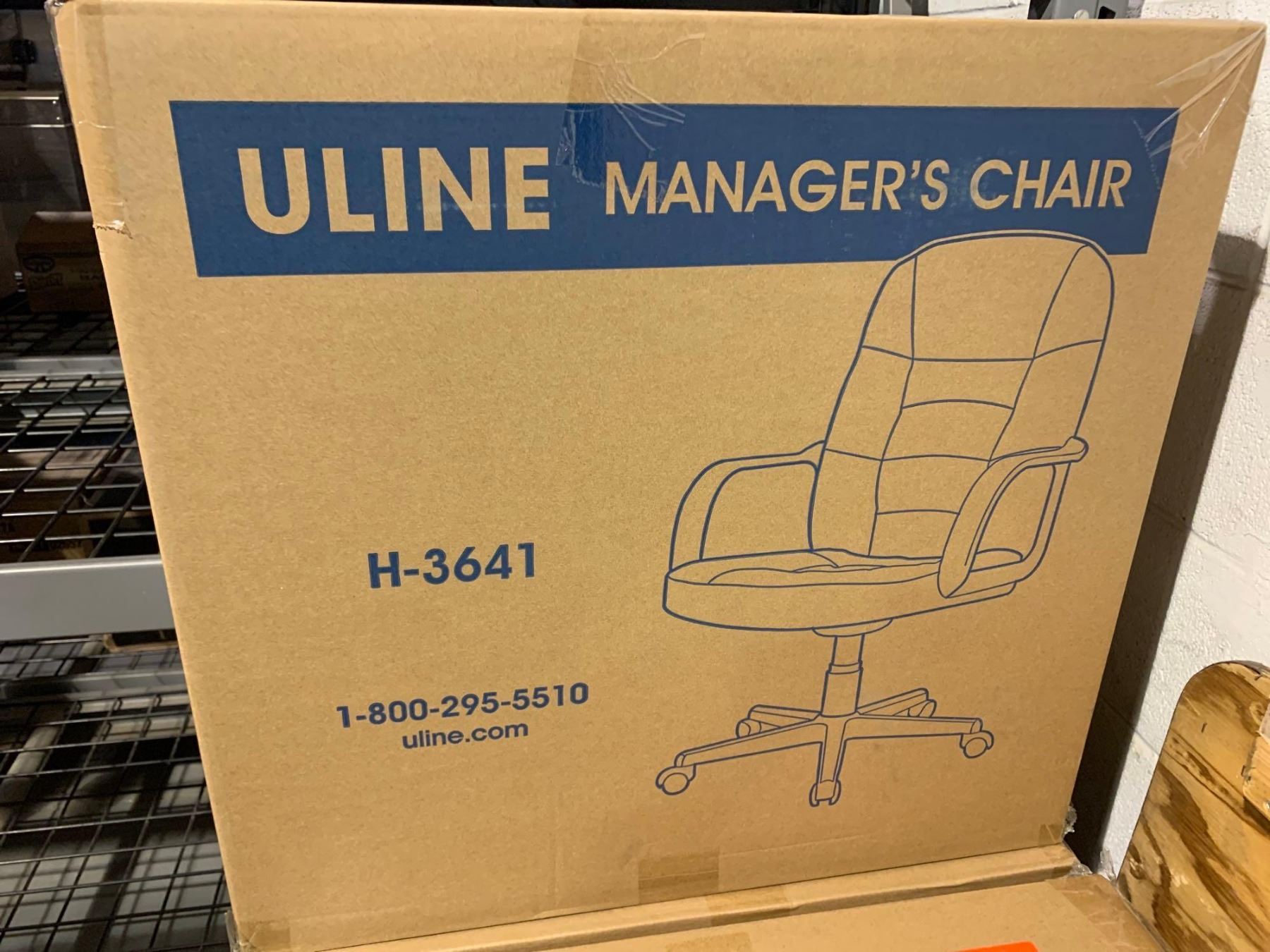New Uline H-3641 Leather Managers Chair - 3 1/2  thick seat with 3  back - Black